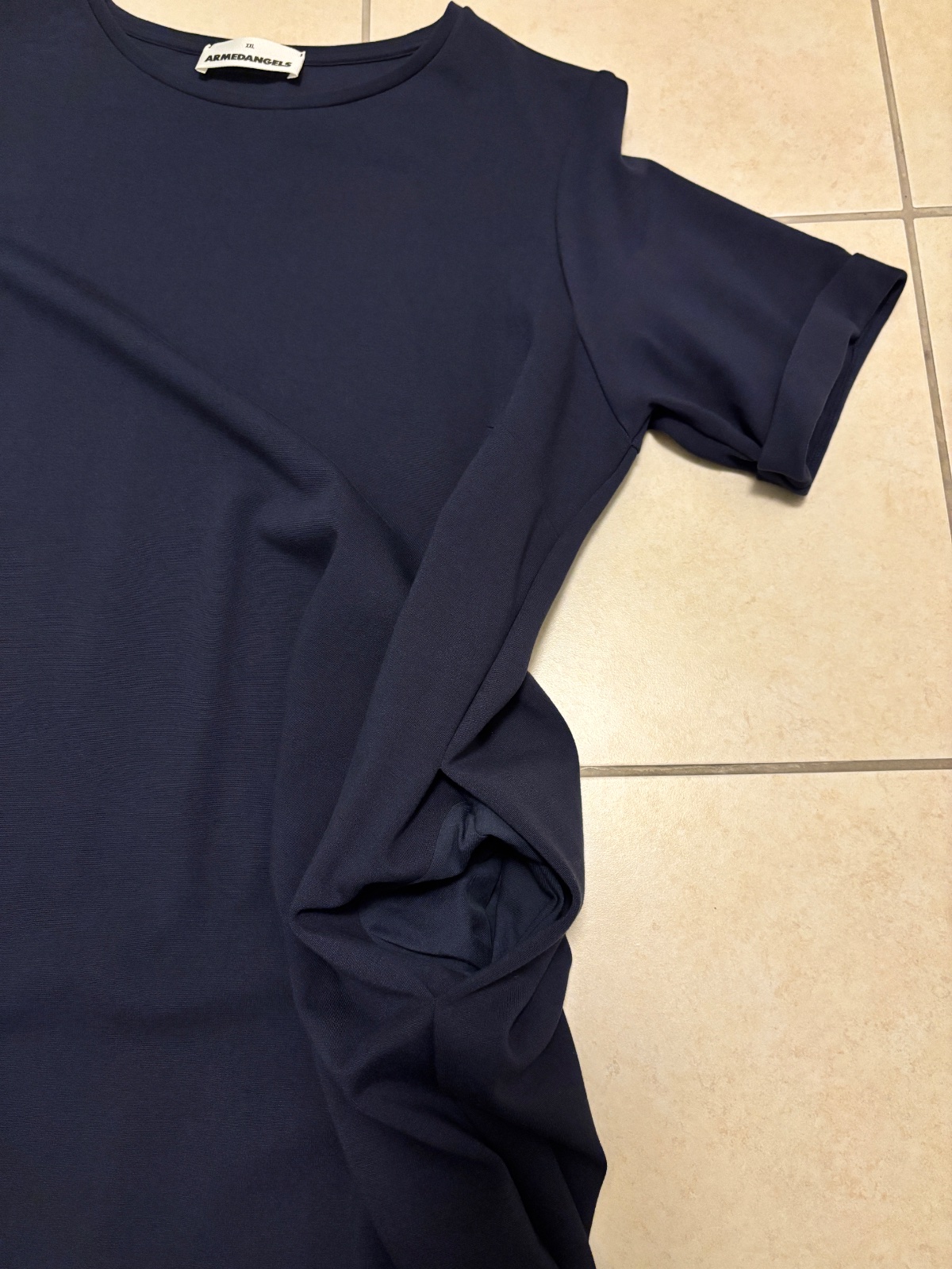 Kvalitná značka udržateľnej módy Armedangels, hrubšie šaty z pleteniny vyrobené v Portugalsku. Zloženie 82% viskóza, 16% polyamid, 2% elastan. Nekrčivé, splývavé, dve vnútorné vrecká. Neboli nikdy oblečené, len prvýkrát vypraté.