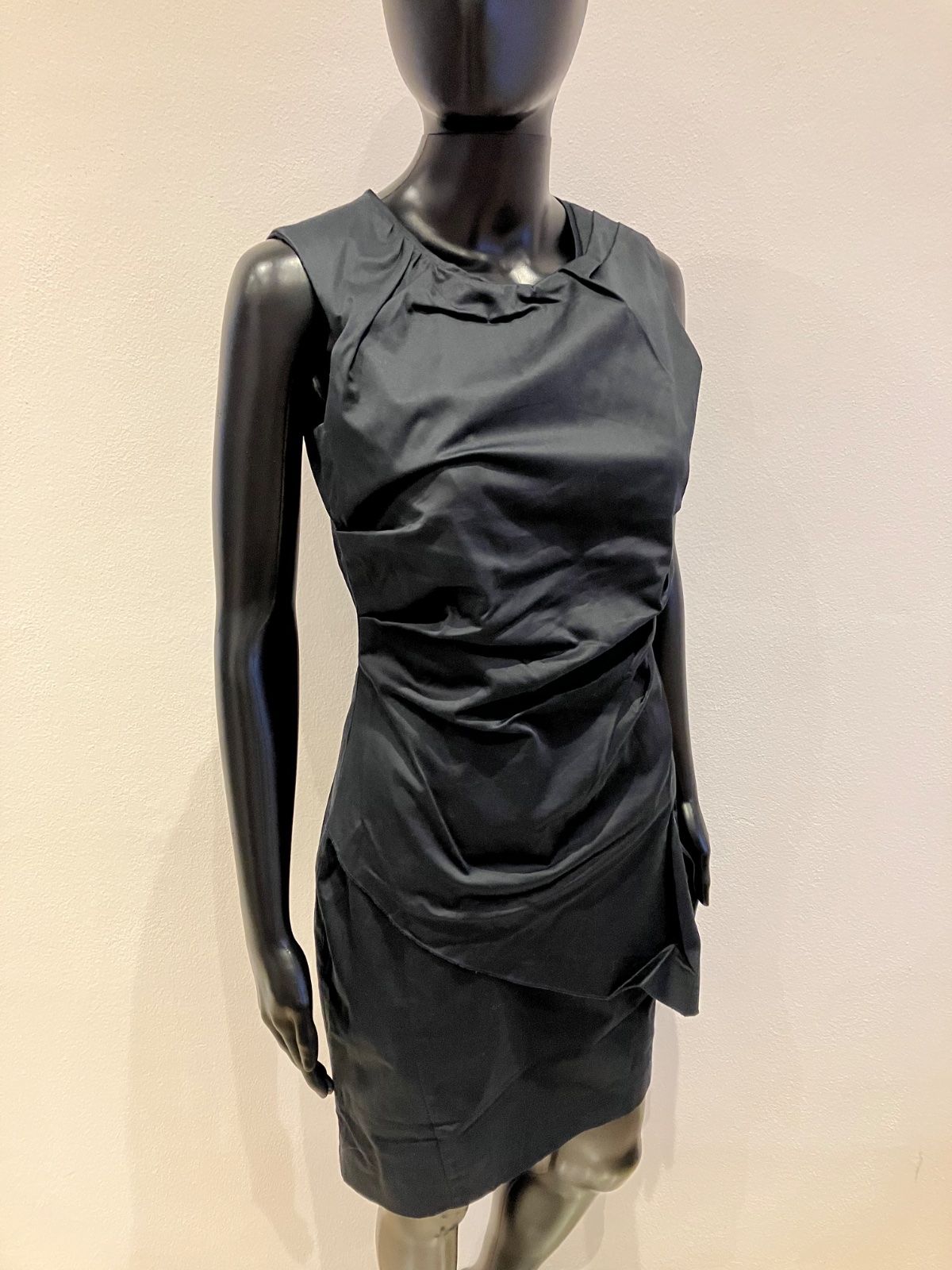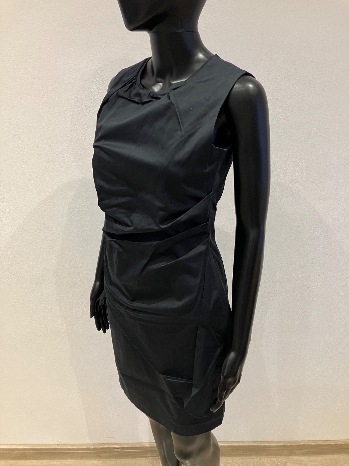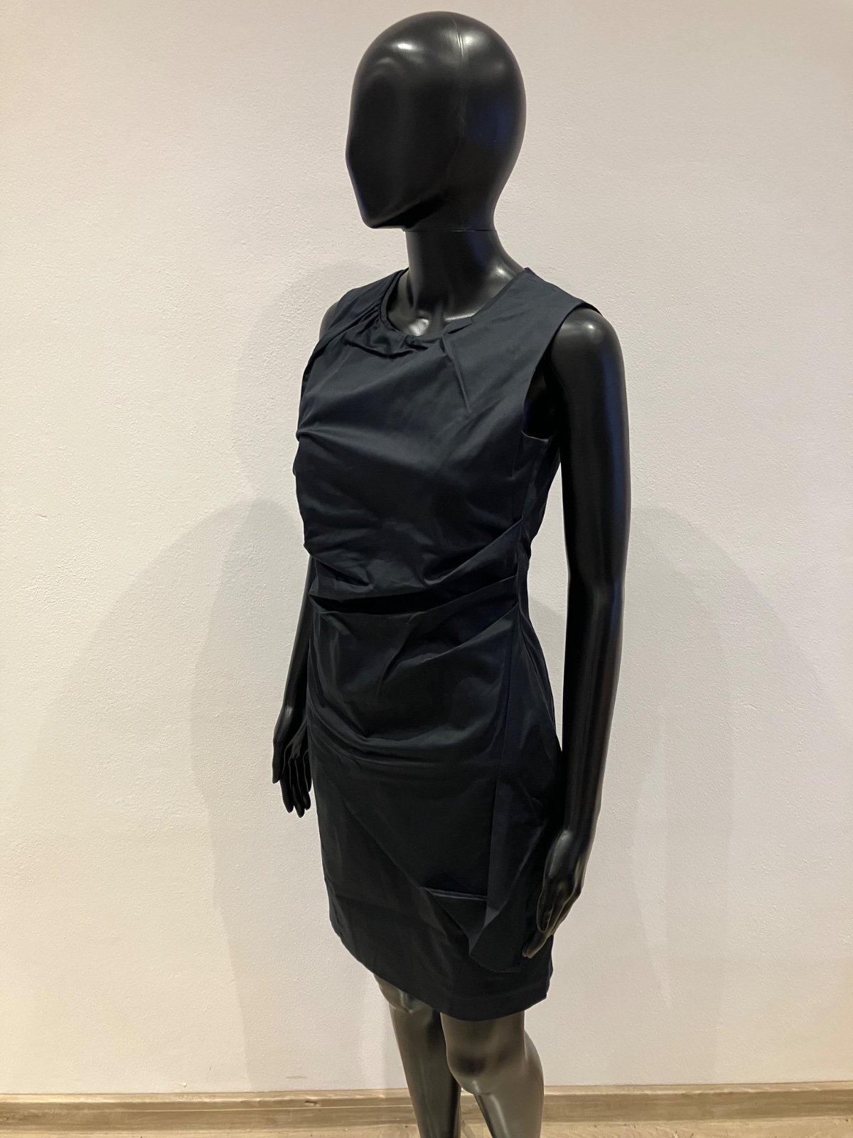 Dámske čierne ierne šaty bez rukávov, elegantné, zapínanie vzadu na zips,jemne elastické, materiál 97%bavlna,3%elastan.