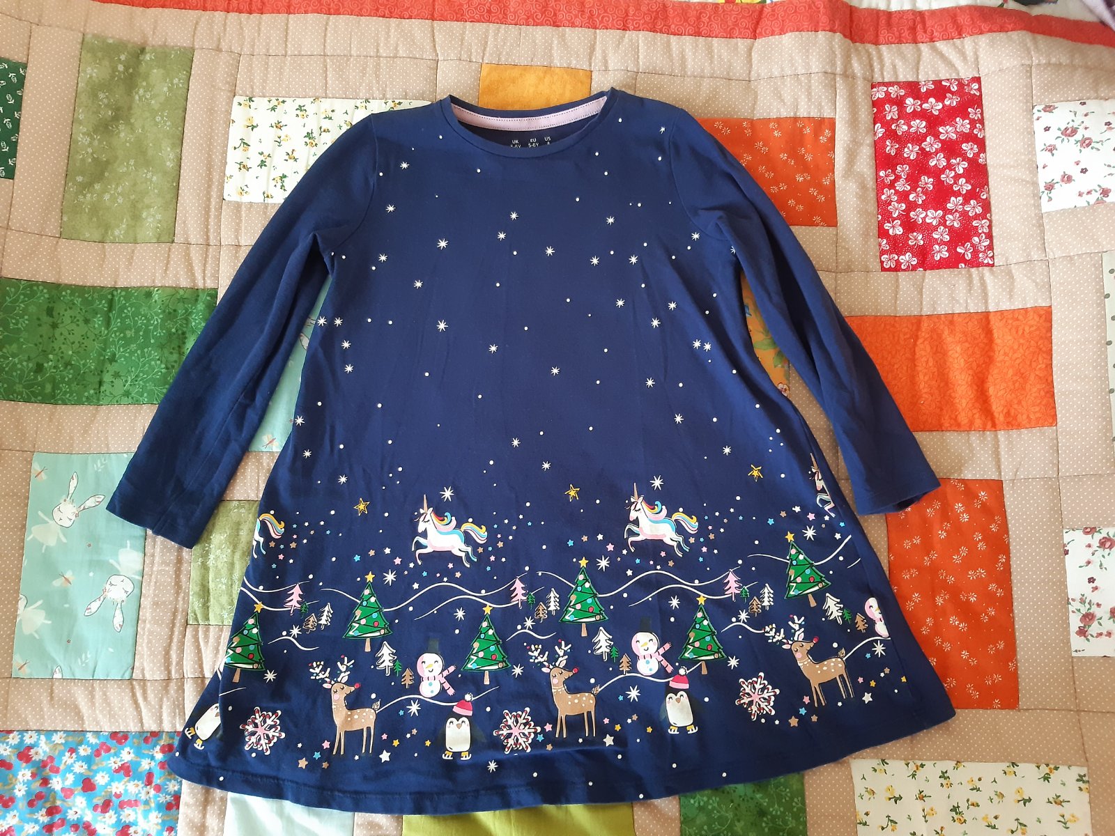 Vianocne saty nosene do skolky v predvianocn obdobi. Krasny motiv. Super stav bez poskodeni. Velkost 110/116.