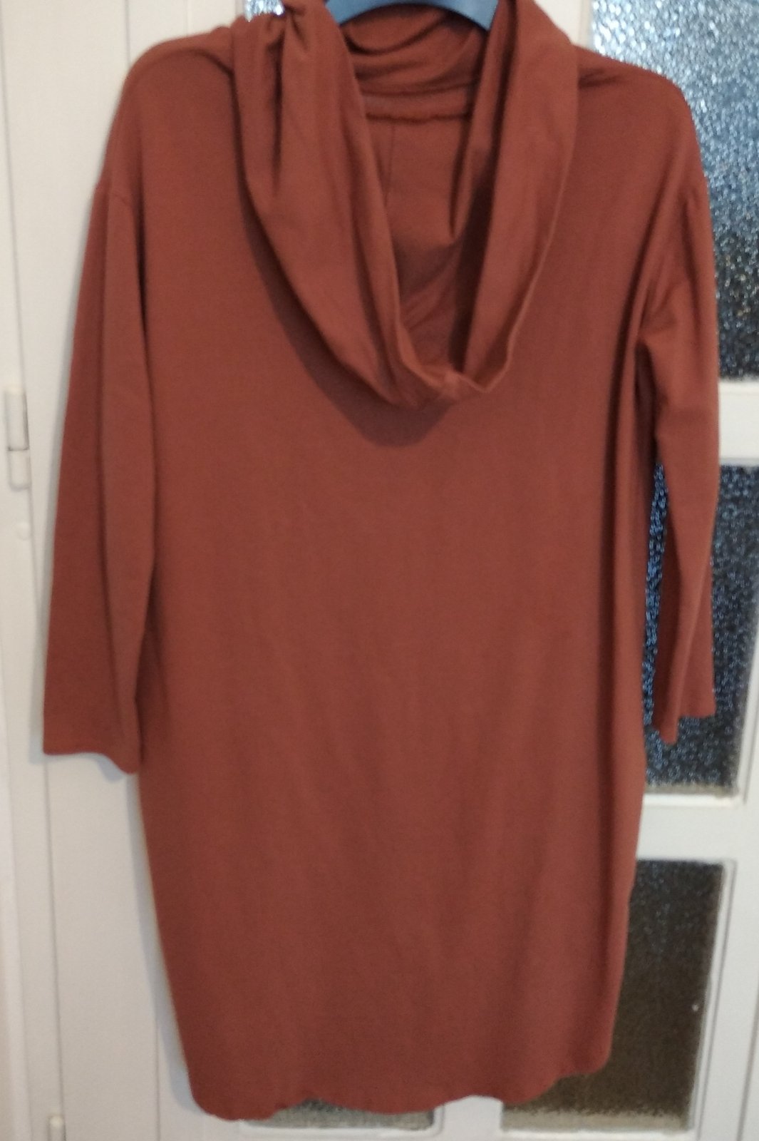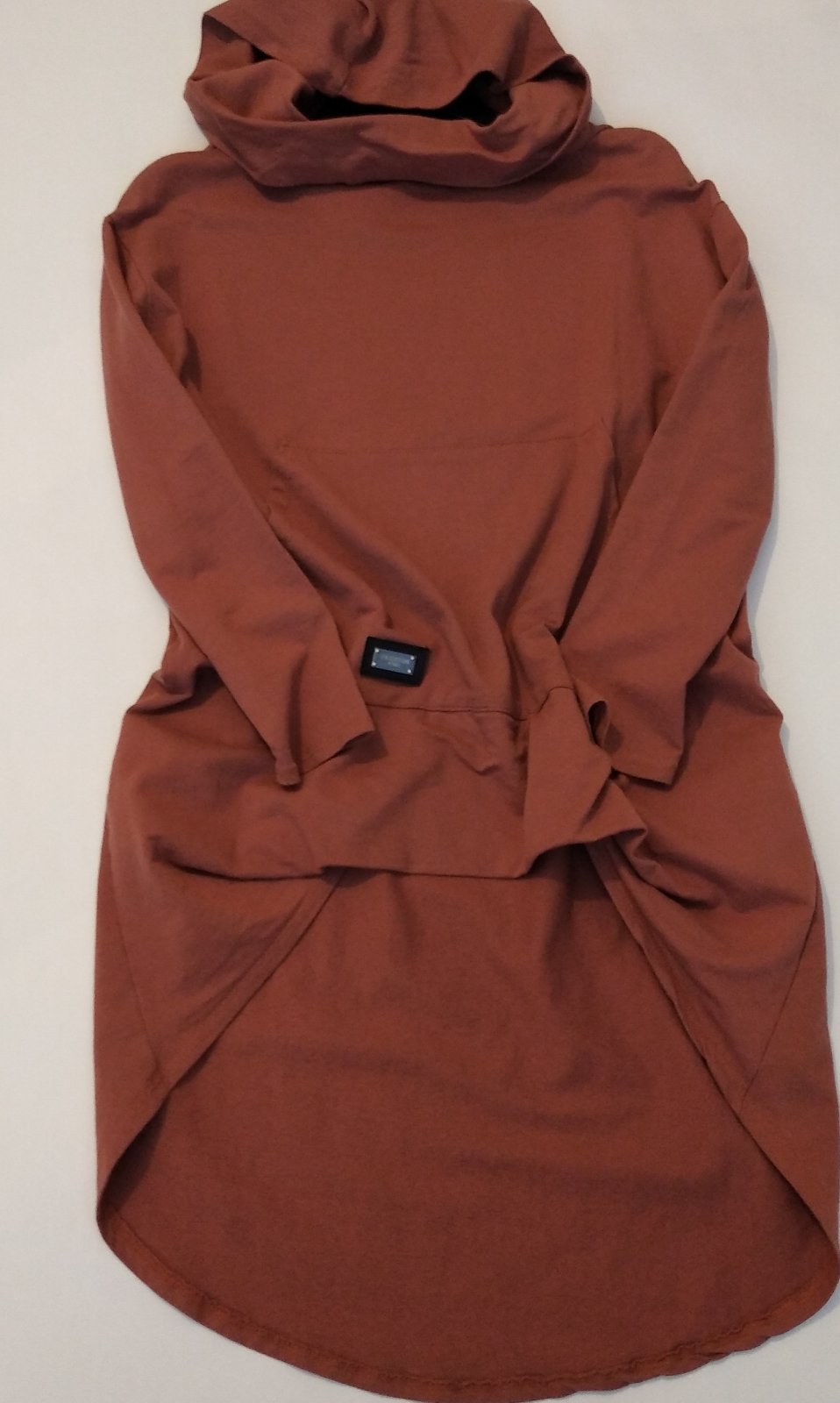 Mikinové šaty škoricovej farby s kapucňou 36