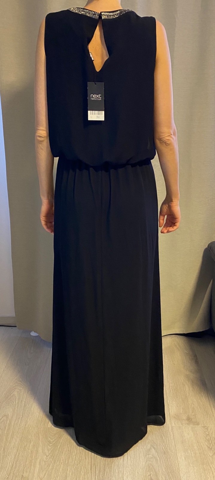 Saty su nove. UK velkost 12, nase M-ko, podla mna. Bezne nosim S-ko a su mi velke.