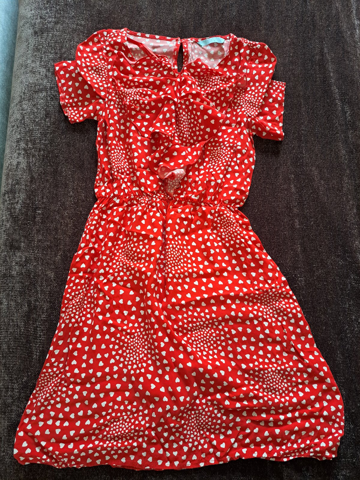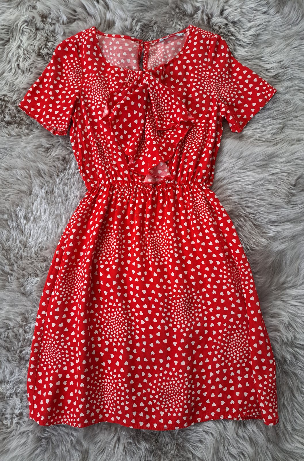 Mile lahke padave letne saty s potlacou srdiecok. Pisana velkost UK8 Petite, realne pohodlna 34/utlejsia 36. Par razy oblecene, ako nove.