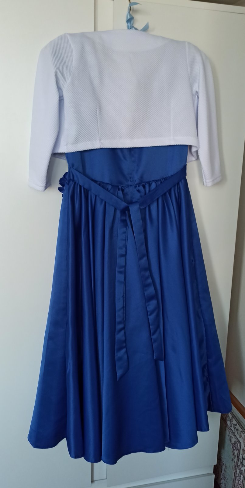 100% stav, oblečené len raz. Celková dľžka 105cm, píše veľkosť 14, ale dcéra ich mala oblečené ako 11 ročná. Je k nim aj kovovový kruh, aby sukňa pôsobila bohato, ktorý sa ale dá vybrať. Cena spolu s bielym bolerkom 37€ + poštovné.
