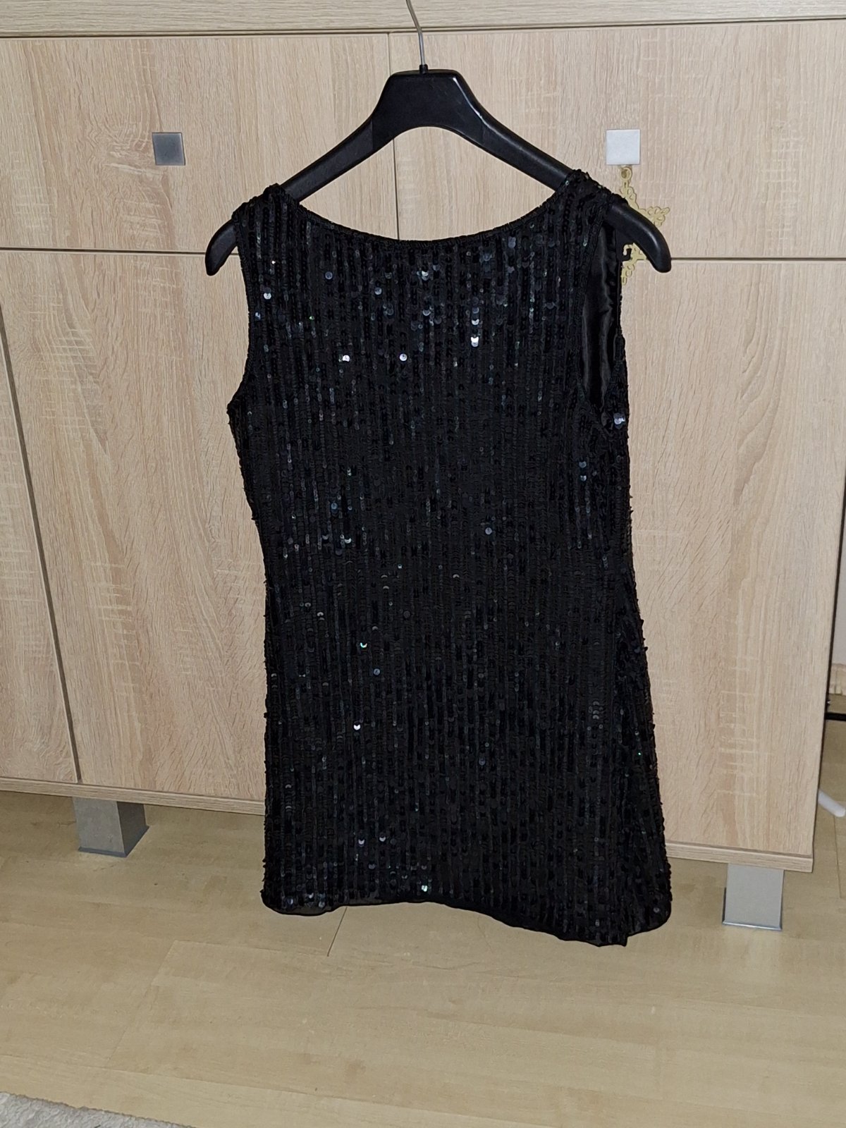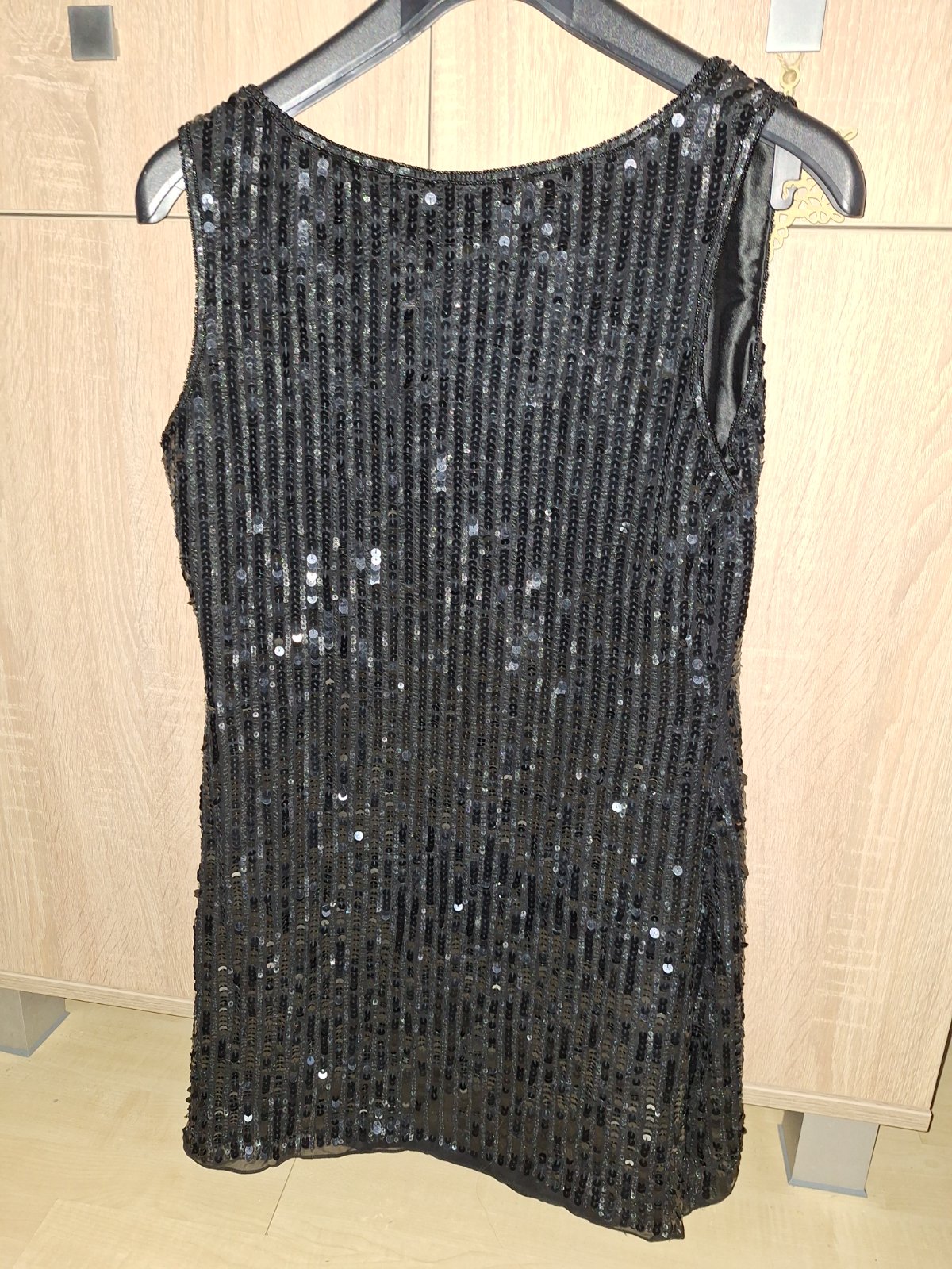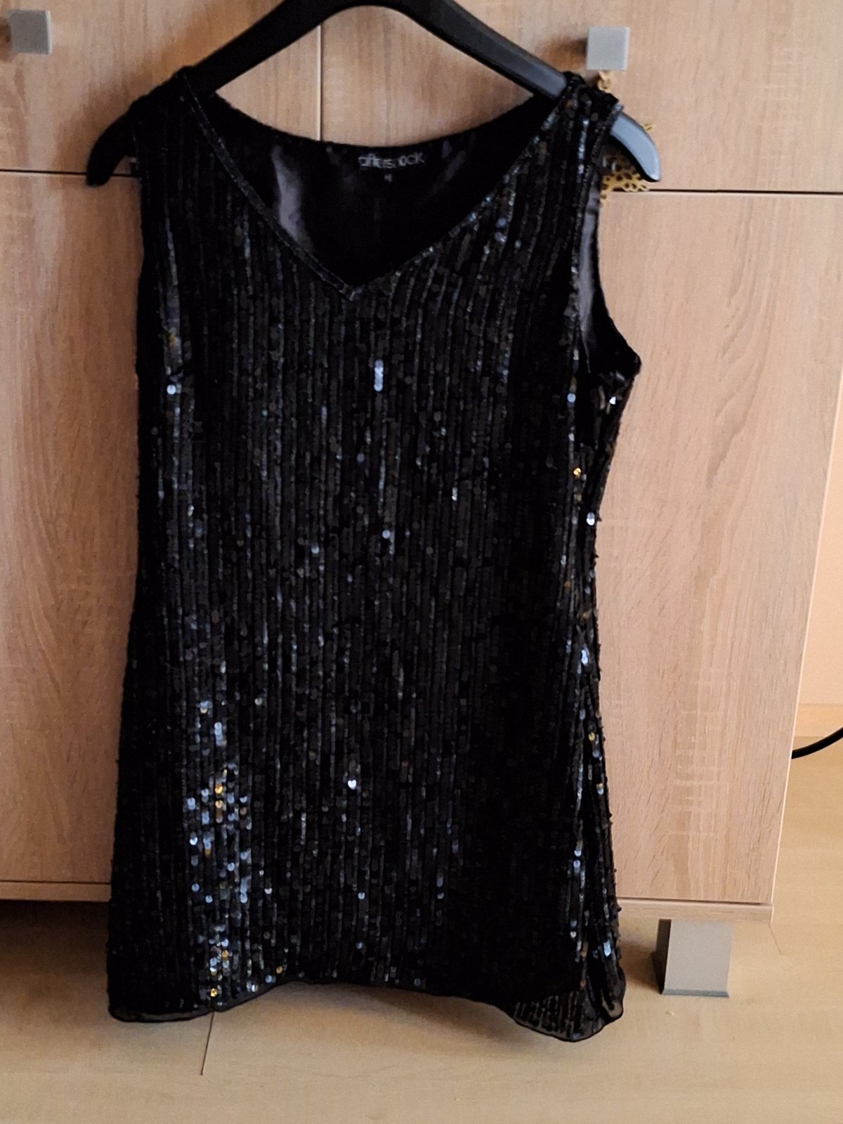 Modne flitrované,trblietavé saty,kvalitnej značky AFTERSHOCK London. Veľkosť pisana M,nobsu tak volnejšie S,obtiahnutejšie M-ko. Velmi kvalitné,celopodšité kvalitnou hrubšou satenovou podšívkou. Zvršok kvalitne prevedený z flitrov a koráliek. Zboku zips.