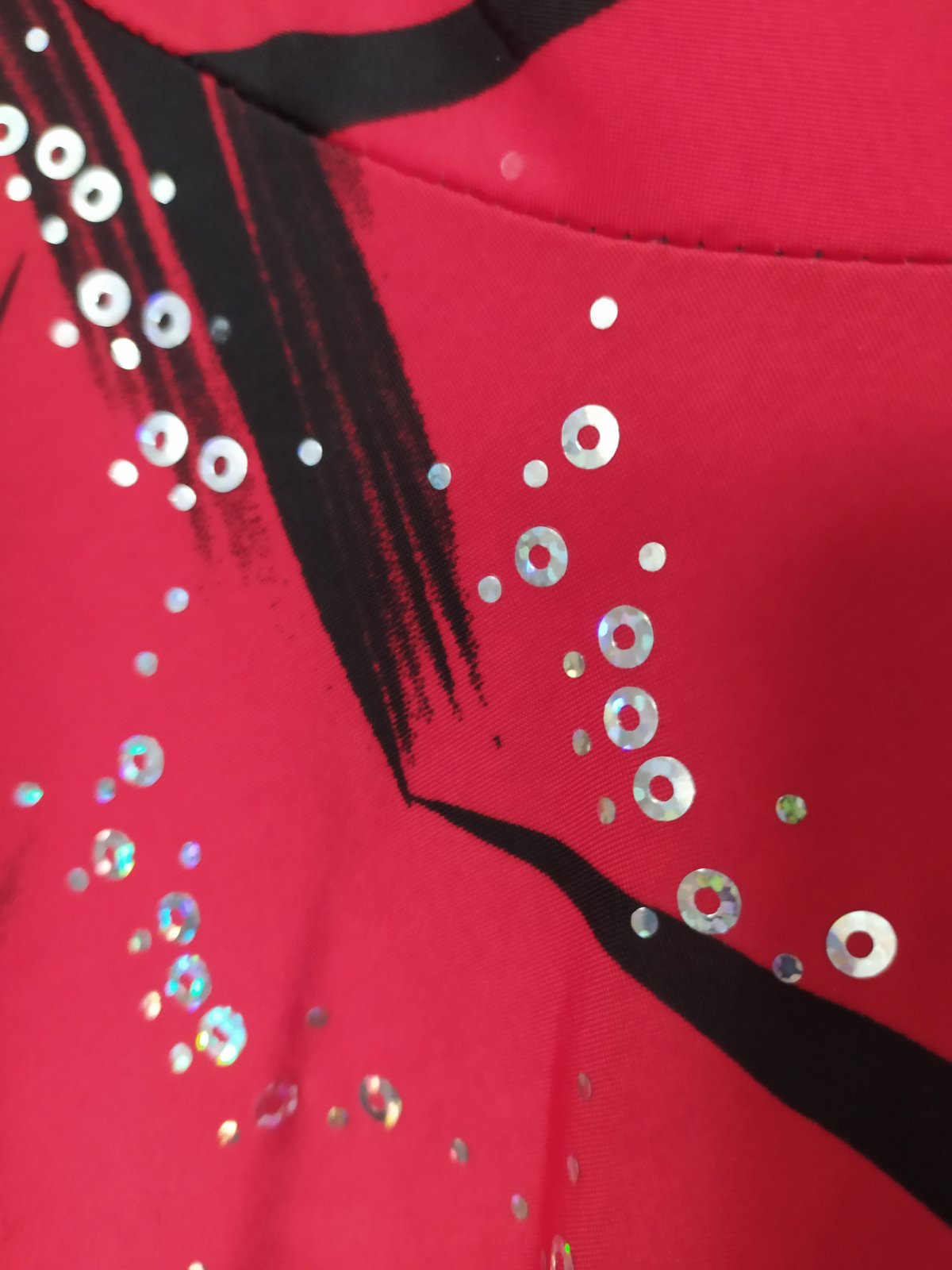 Predám nepoužité elegantné šaty, krasnej farby s holografickými trblietkami. Top stav