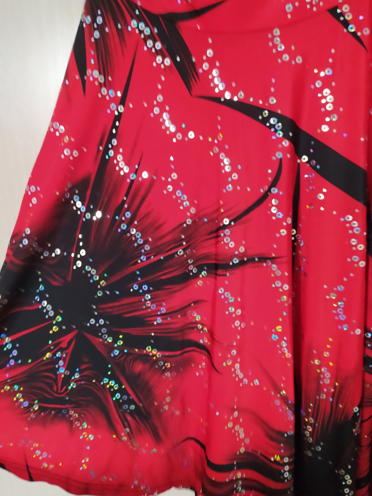 Predam elasticke saty prilezitostne, s lesklymi ozdobami Saty su podsite. Material nylon Dlzka celkova 92 cm - dlzka sa da upravit Sirka pod pazuchami 2x35 cm Sirka na spodku 2x58 cm Dobry noseny stav