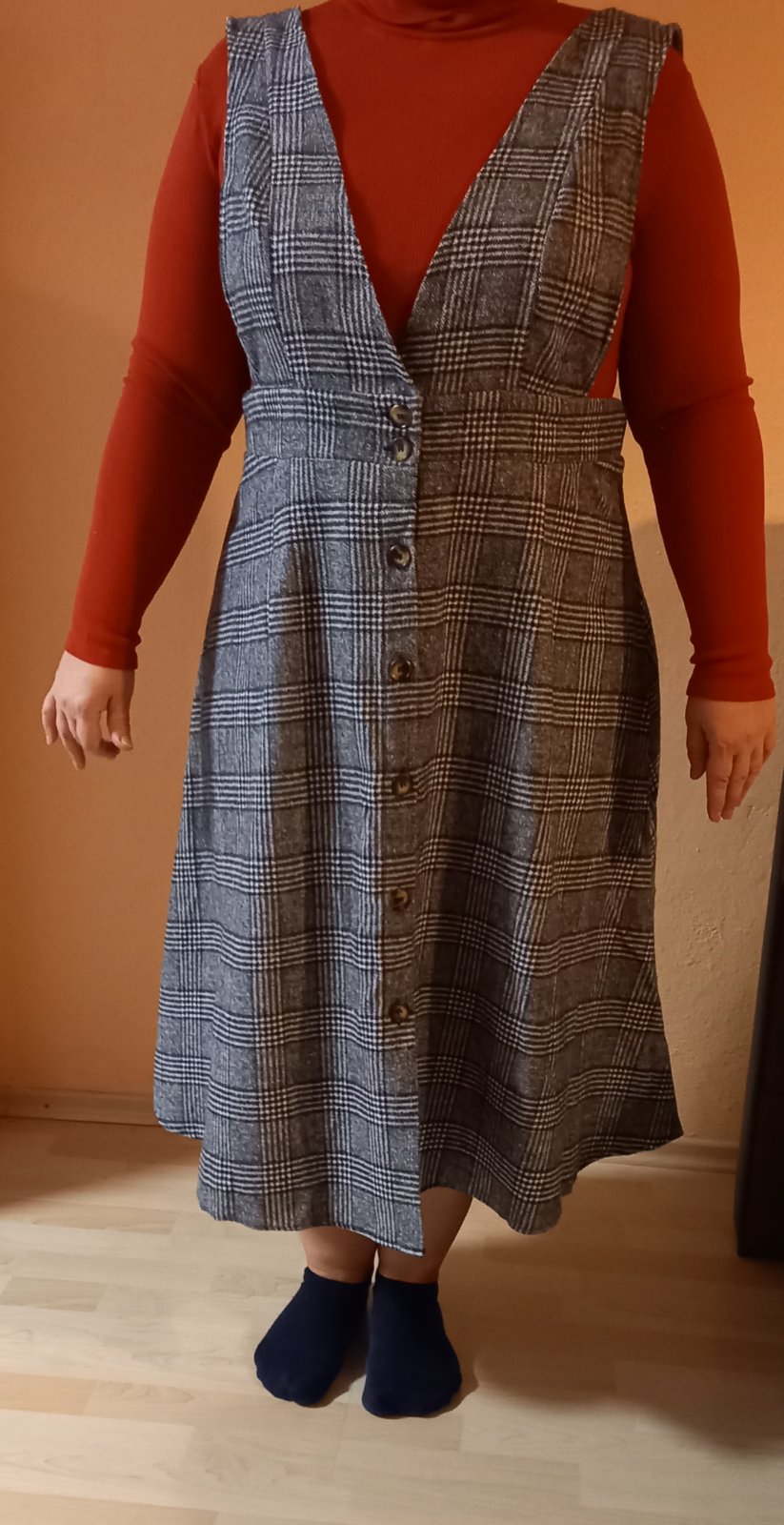 Kárované šaty teplè vhodné na zimu, jeseň.Nové výborný stav. Č.XXL.. Rozmer: pás 104cm , dĺžka 119cm, prsia 118cm. Cena 10 eu plus poštovnŕ