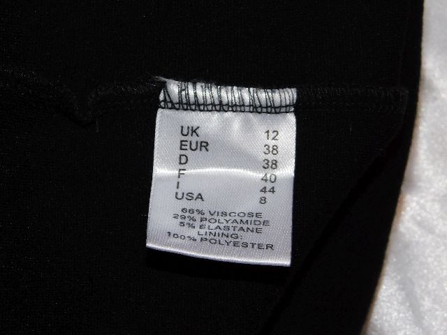 Luxusne trendy elegantne saty,čiernej farby,z stredne hrubeho upletu,s podsivkou,s vypchávkami,vzadu zapinanie na zips.66%viskoza,29%polyamid,5%elastan.bezne znamky nosenia.