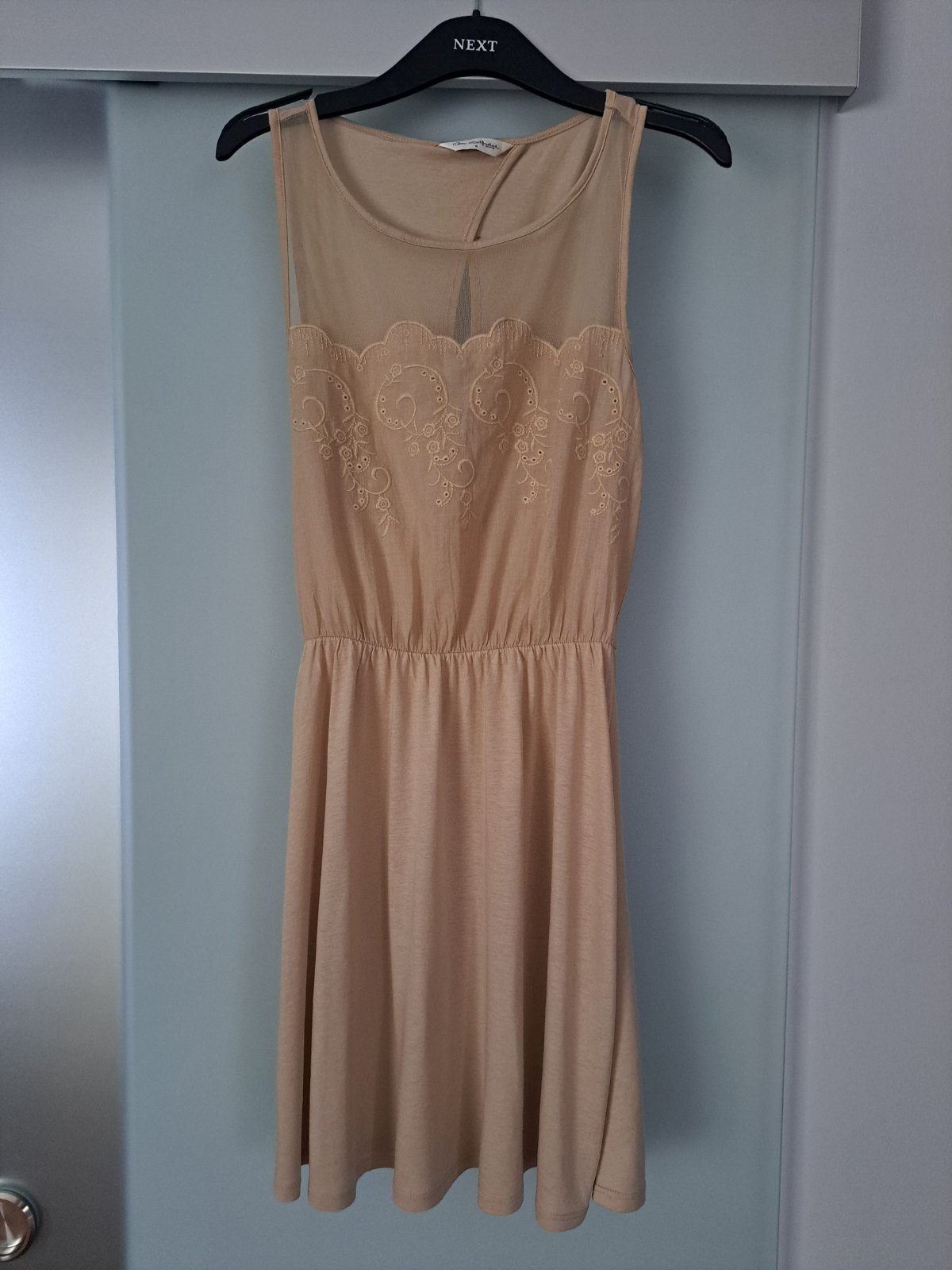 Superlahke padave letne saty s otvorenym chrbatom. Jemna vysivka a mesovy panel. Jemna prisposobiva gumicka v pase. Sadne ako XS/S (34-38). Bez poskodenia. Farba ako na hlavnej foto.