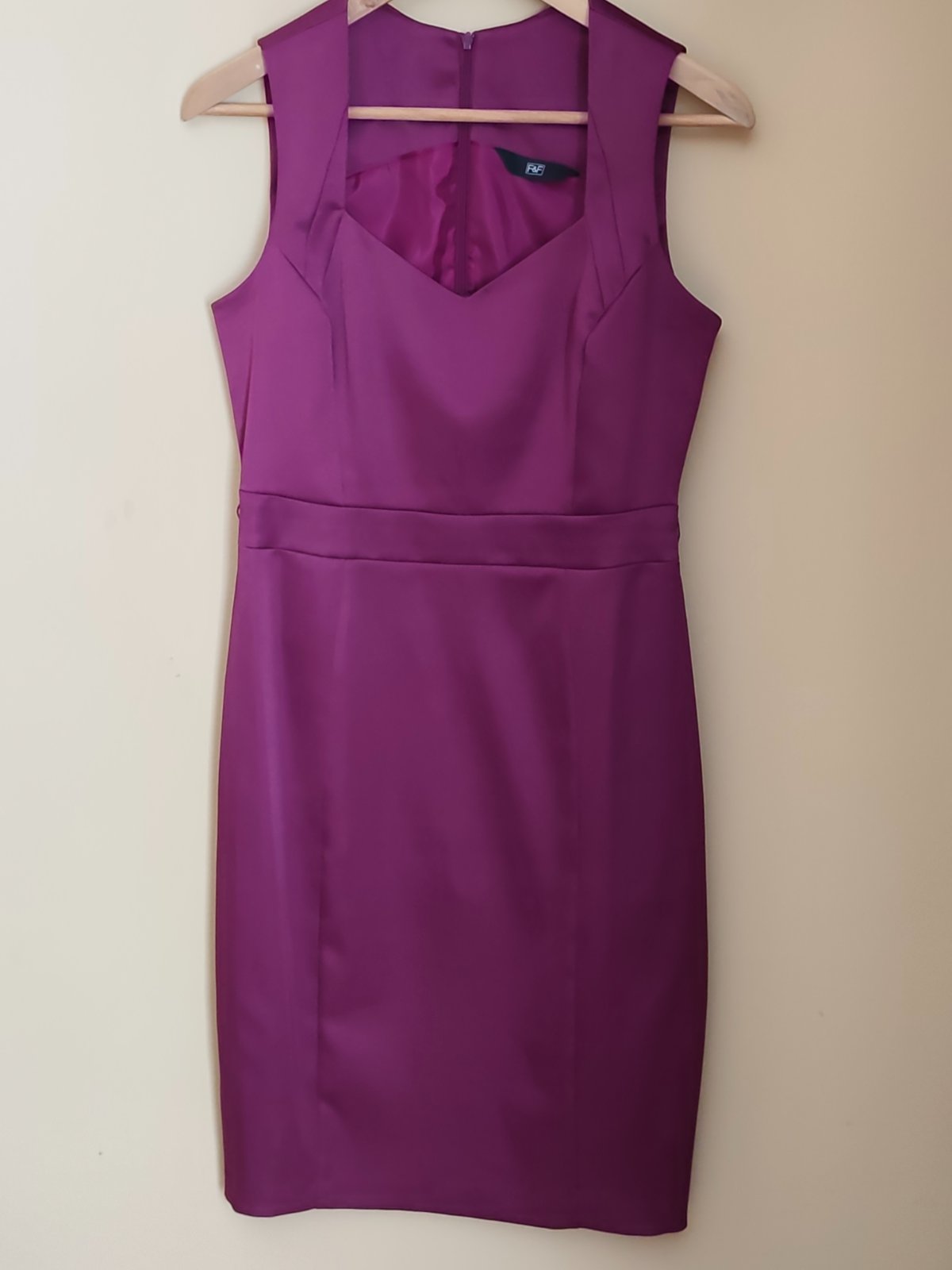 dámske šaty, odtiene fialovej, podšité spodničkou, pekné, v dobrom nosenom stave, materiál 100 % polyester, uvádzaná veľkosť 40, zodpovedá veľkosti XS, porovnaj si miery. Merajte: šírka pod pazucha...
