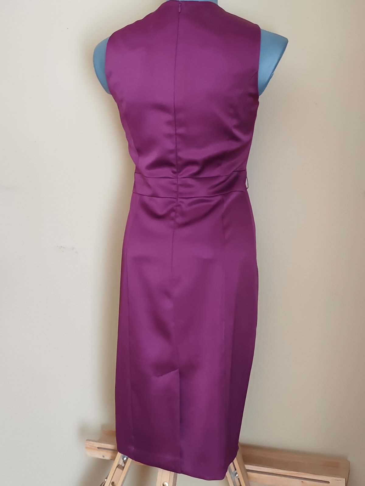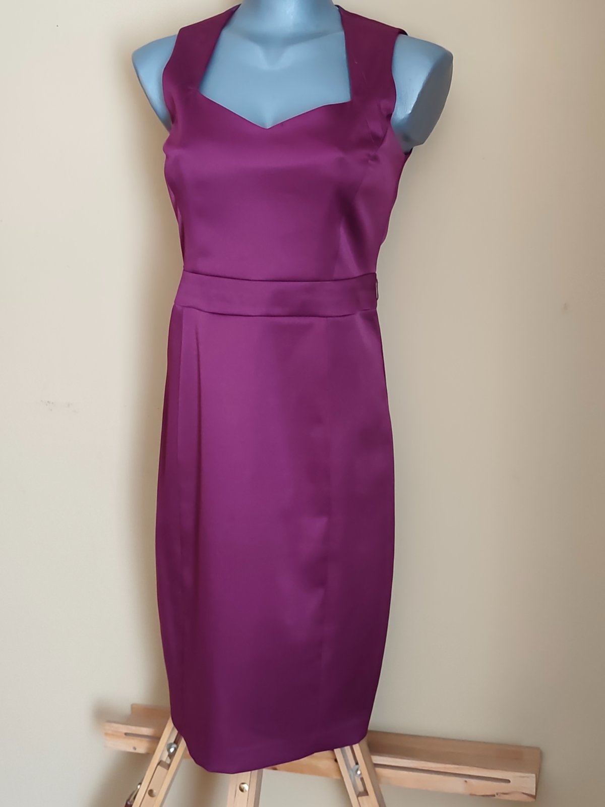 Šaty sú krásnej fialovej farby. Tmavšia ako na foto. Cez prsia 2x 42, pás 2x 36 dlzka 90