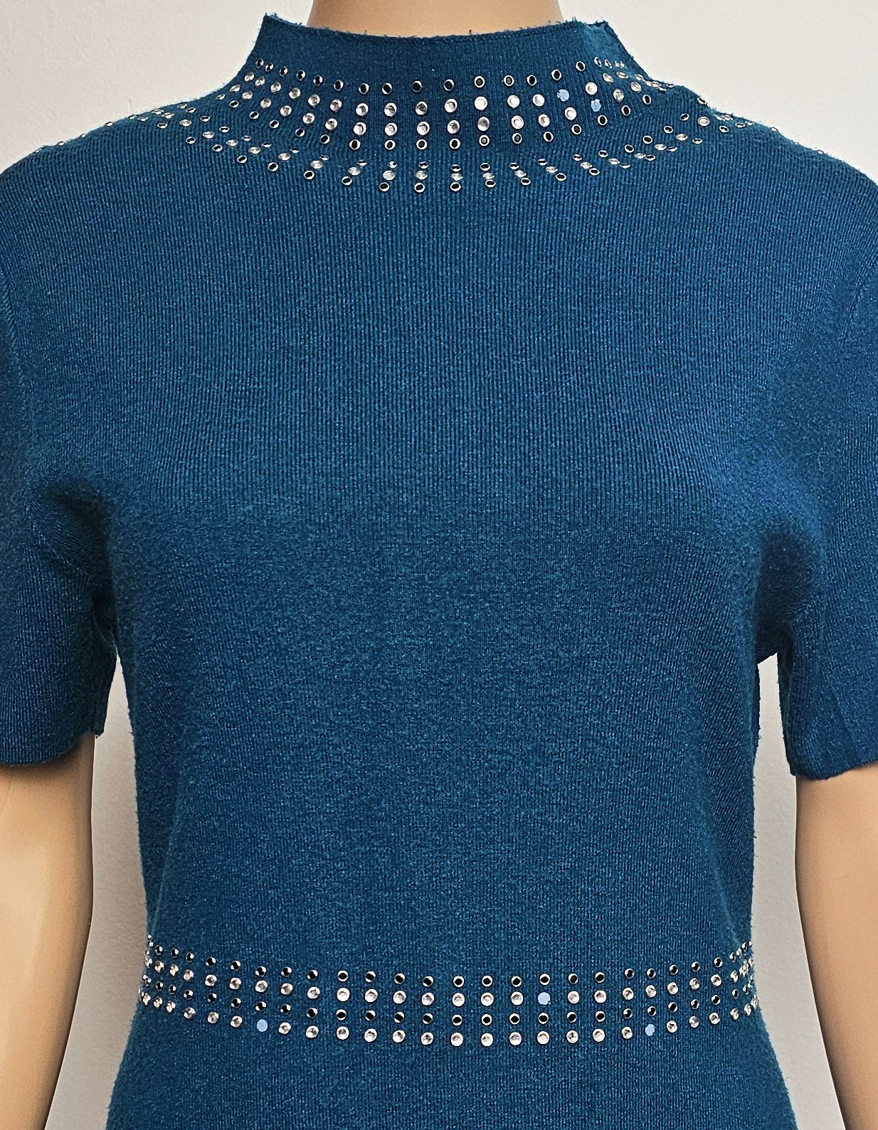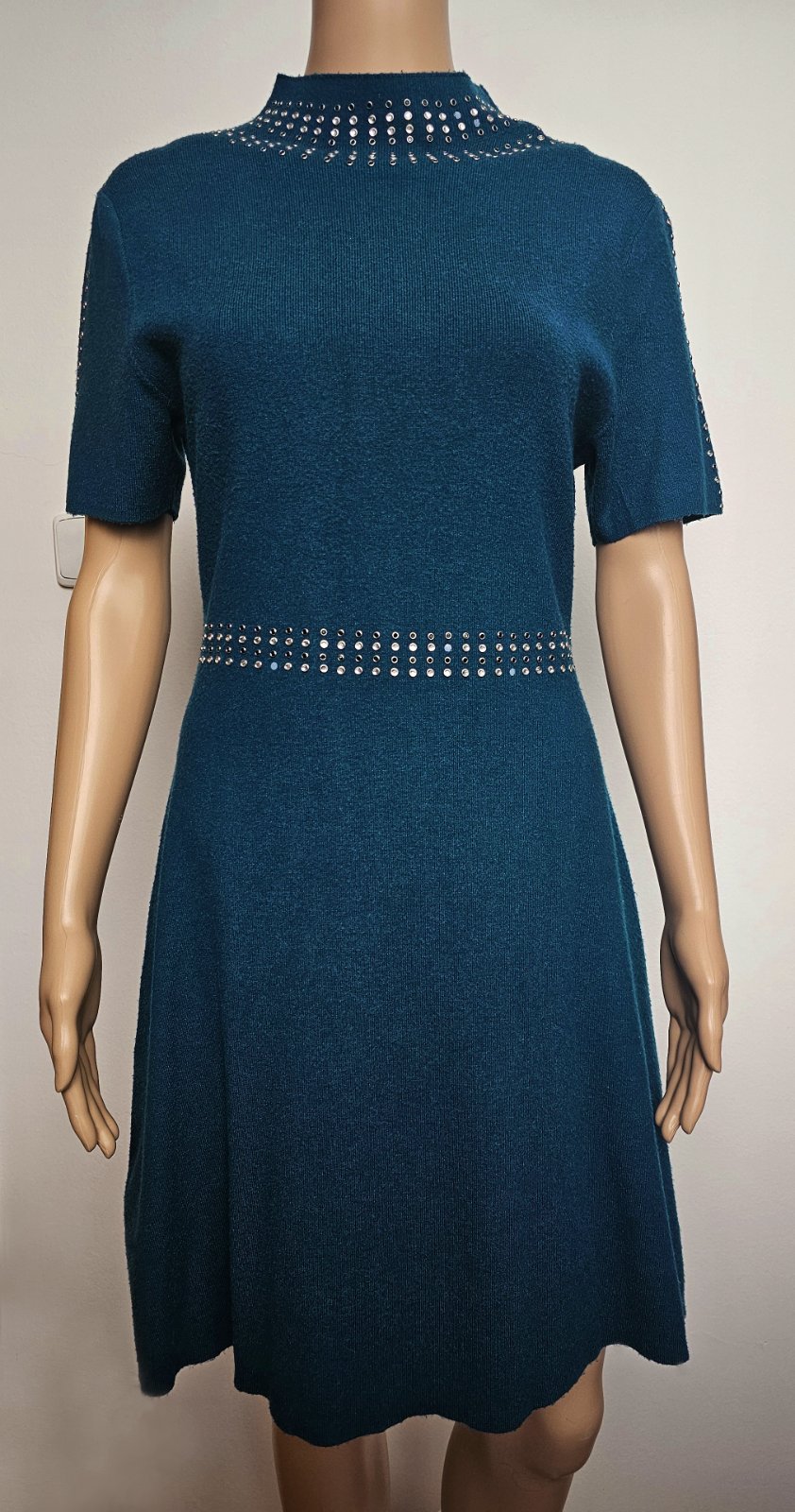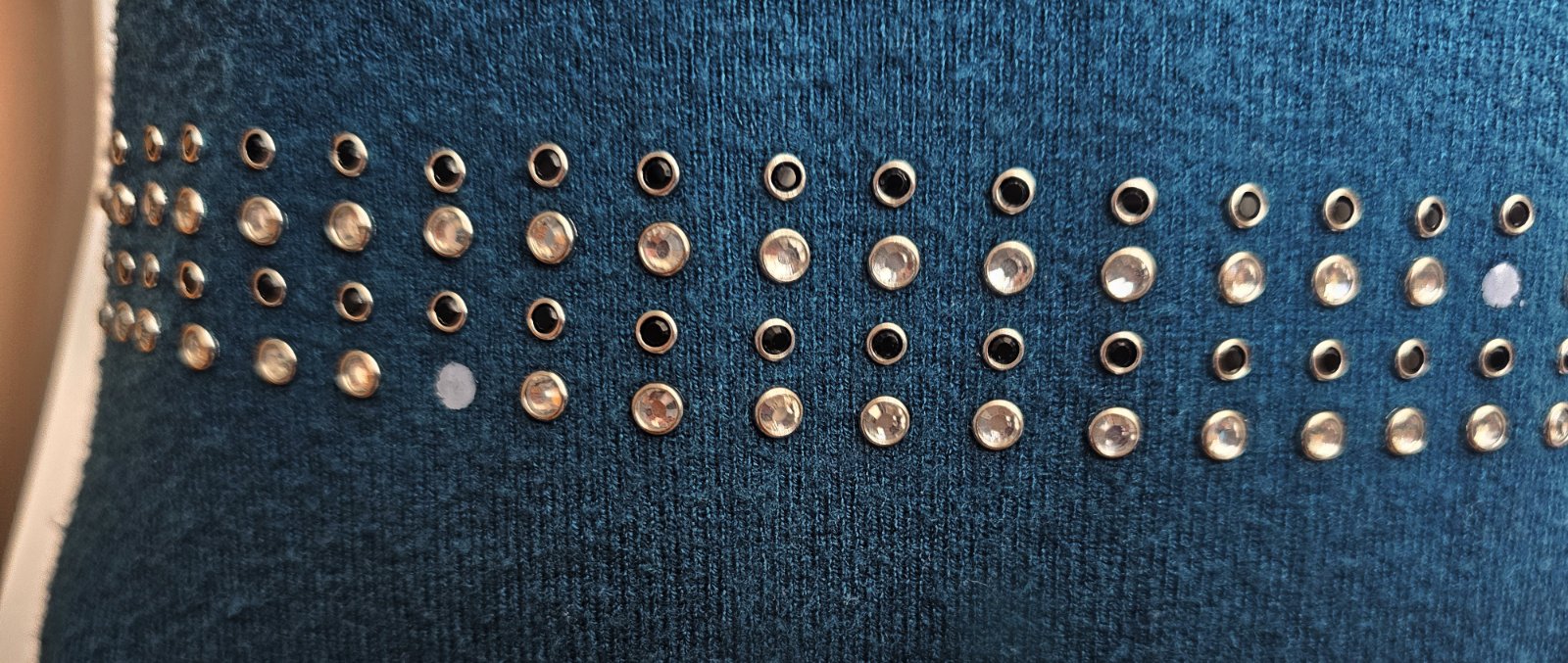 Výborný stav. Na niektorých miestach vypadli kamienky, ale dajú sa dolepiť. Dĺžka 95 cm. Príjemný hrejivý a elastický materiál.