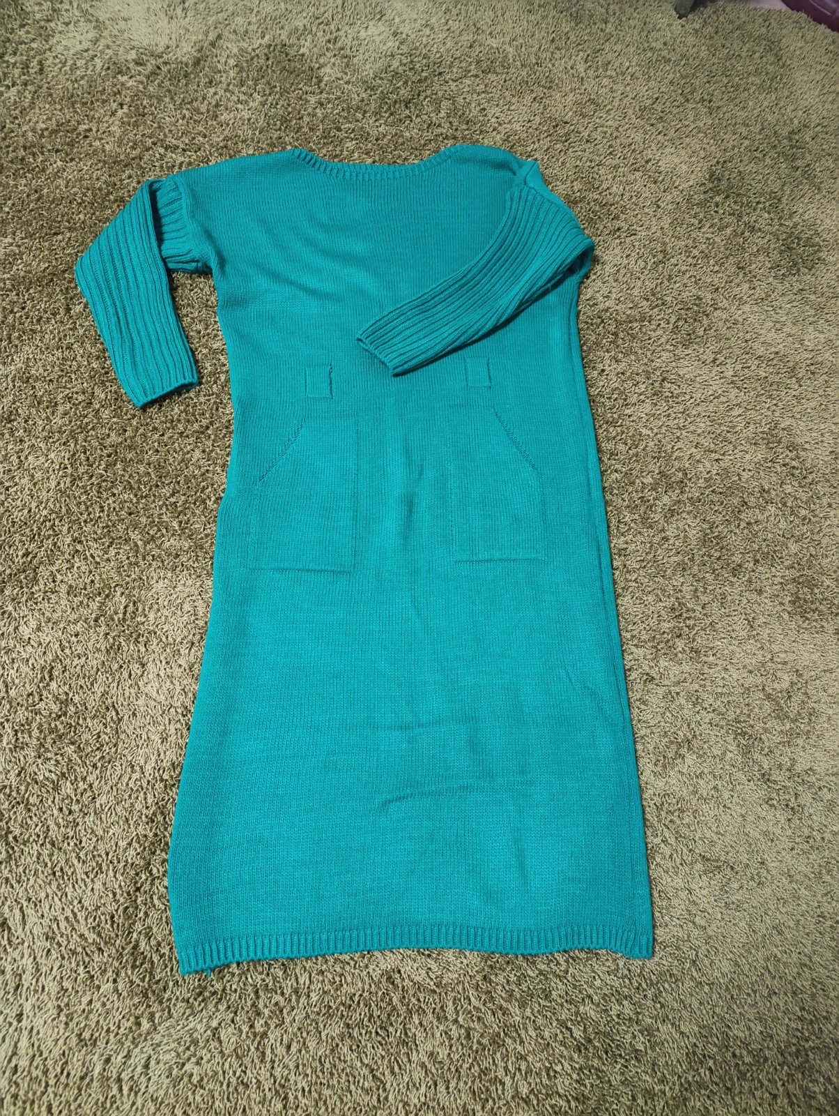 Pletené šaty, málo nosené. Krásna zelená oživí každú ženu. Šaty majú putka na opasok.
