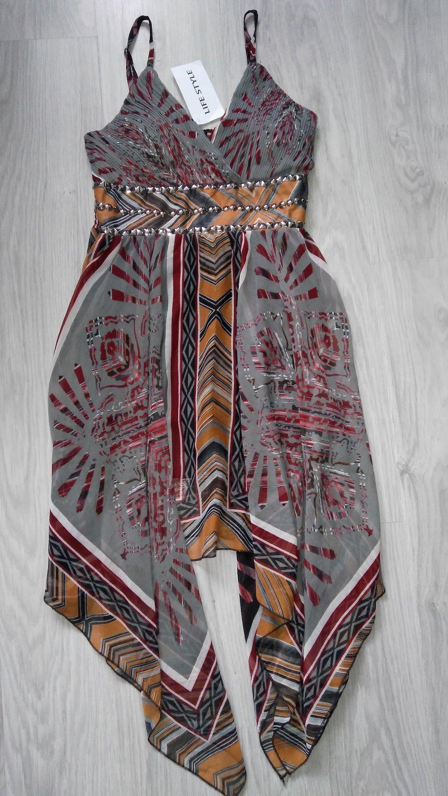 Raz oblečené šaty, akurát som si všimla, že na zadnej strane šiat sa akoby dva kvietky Trochu začali parat- odfotene. Veľkosť nieje písaná, vyzerajú ako Uni (bežne nosím M).
