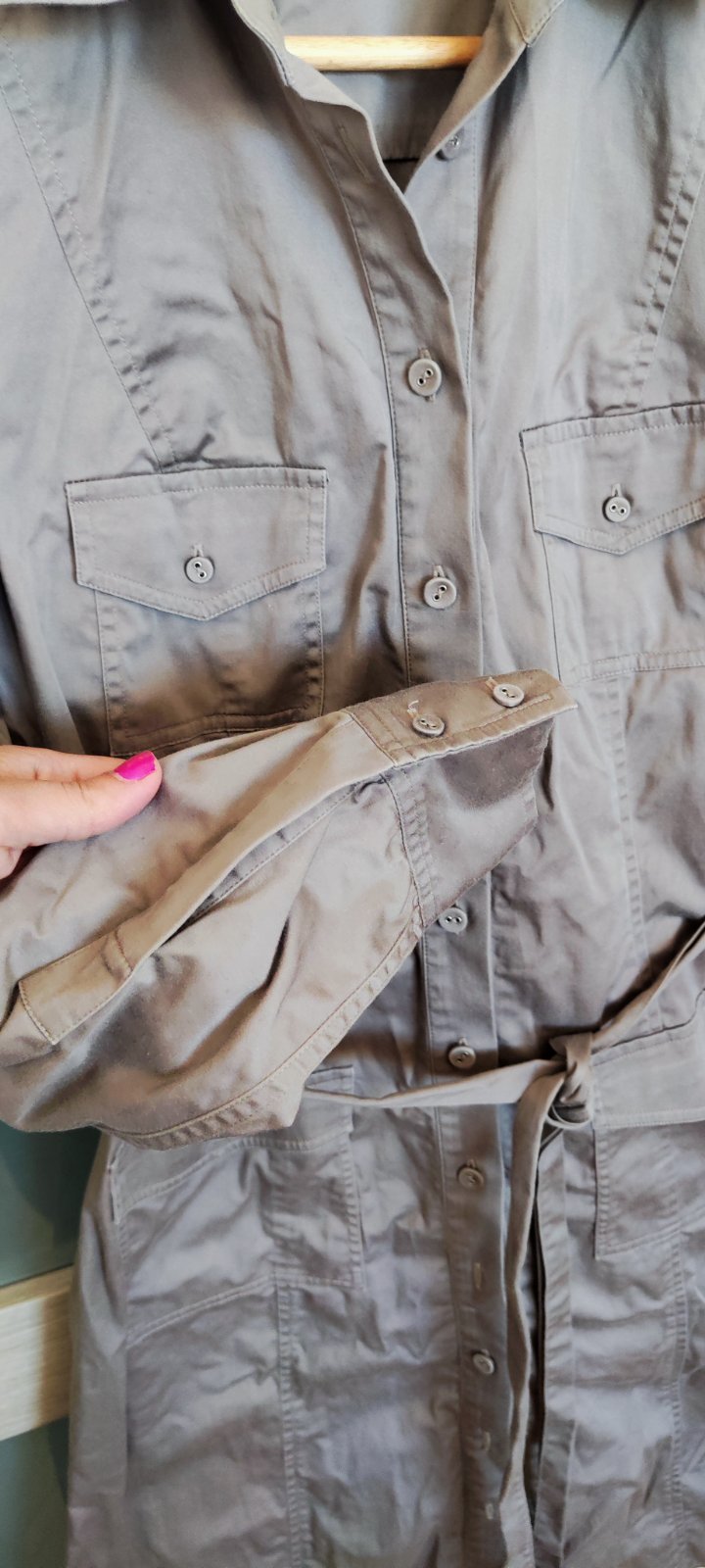 Bavlnené šaty s troškou elastanu na gombíky , v páse na opasok, rukávy dlhé do manžety, ale dajú sa pekne vyrokovať a upnut (viď foto)