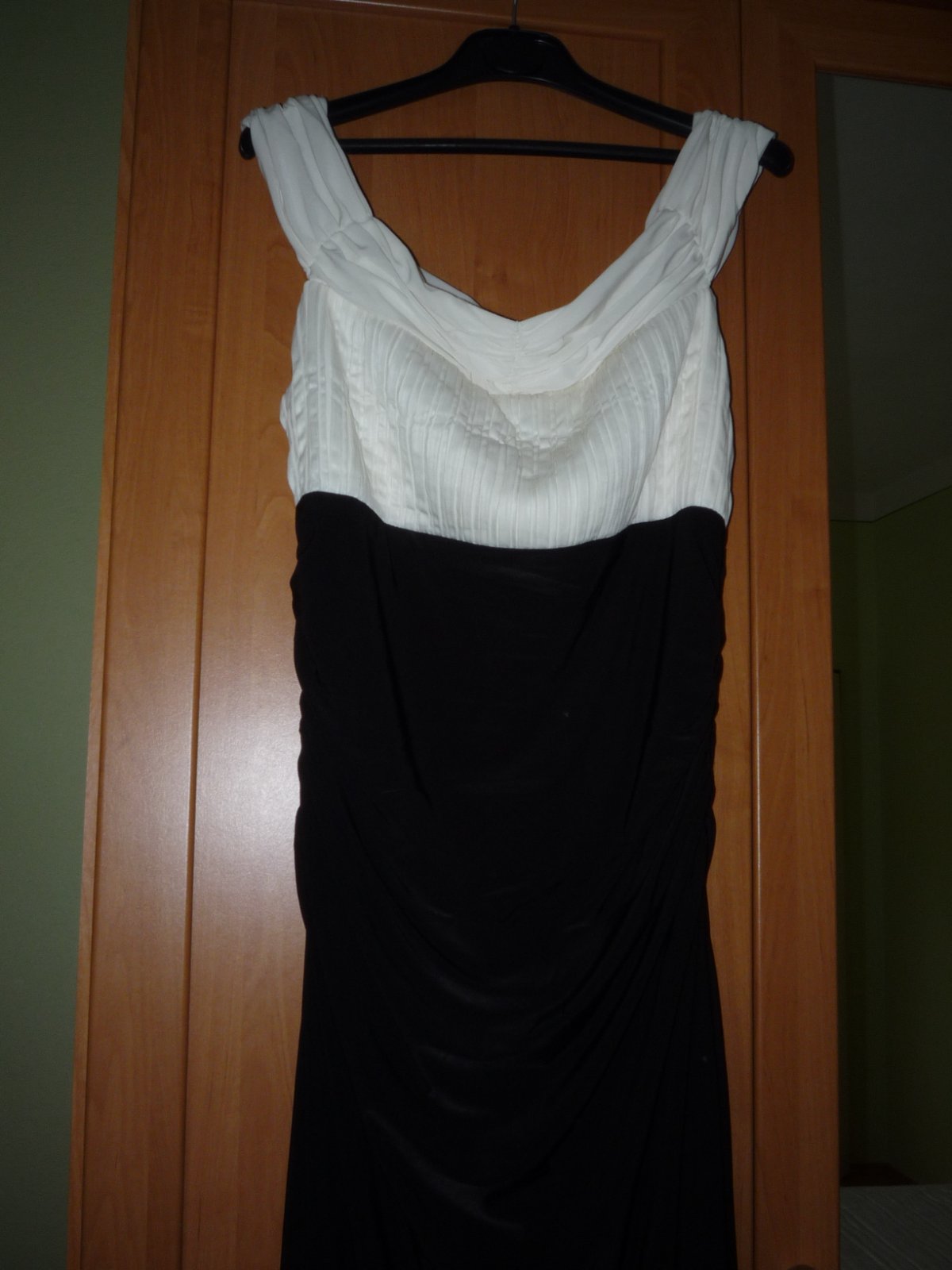 Predám spoločenské šaty, veľmi pekné bielo čiernej farby. Veľkosť 40. Na tenké ramienka, s rozporkom v predu.