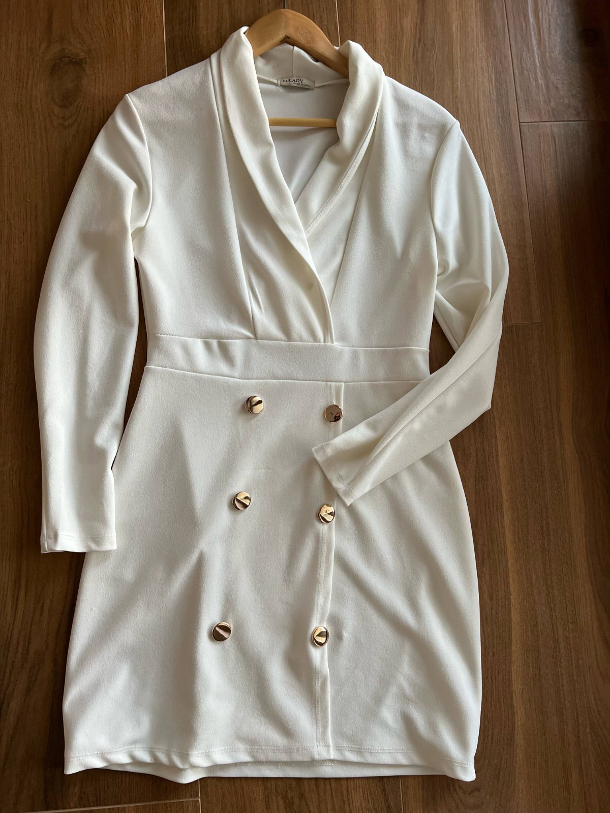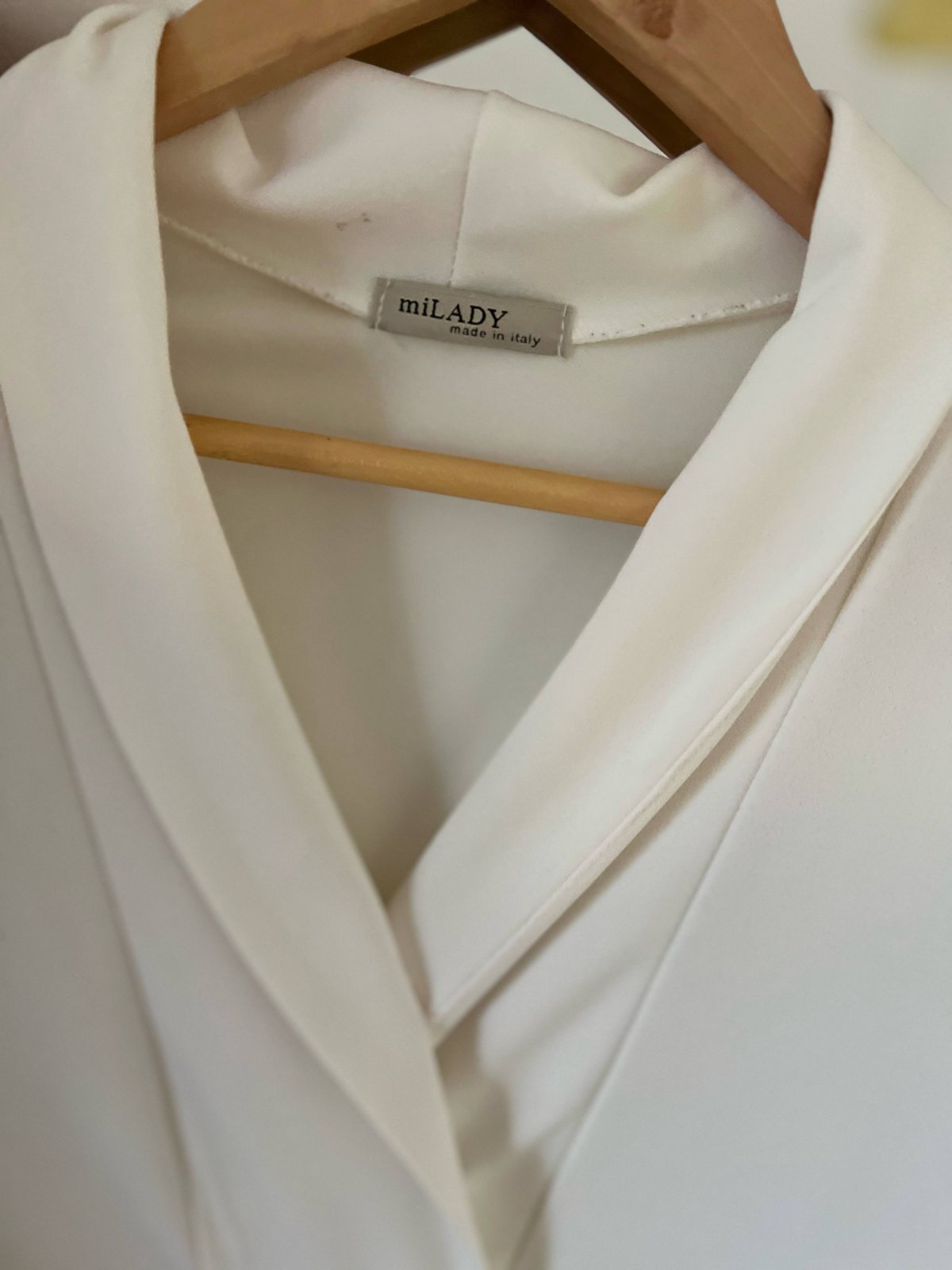 staticky boli 3 krát príležitostne oblecene, jednoduchý strih, zaujímavý golierom, kúpené nové v butiku, elastické, viď. detailné foto 2 gombíky trošku suchnute, lesknú sa tak to nie je vidieť,
