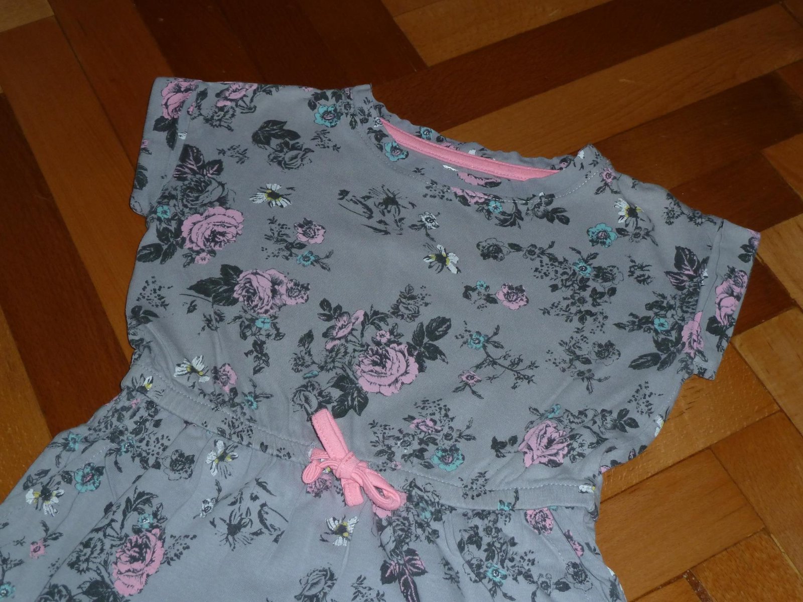 Bavlnene saty vo vybornom nosenom stave, bez poskodeni, po bokoch vrecka. Pisana velkost 110, ale su mensie.