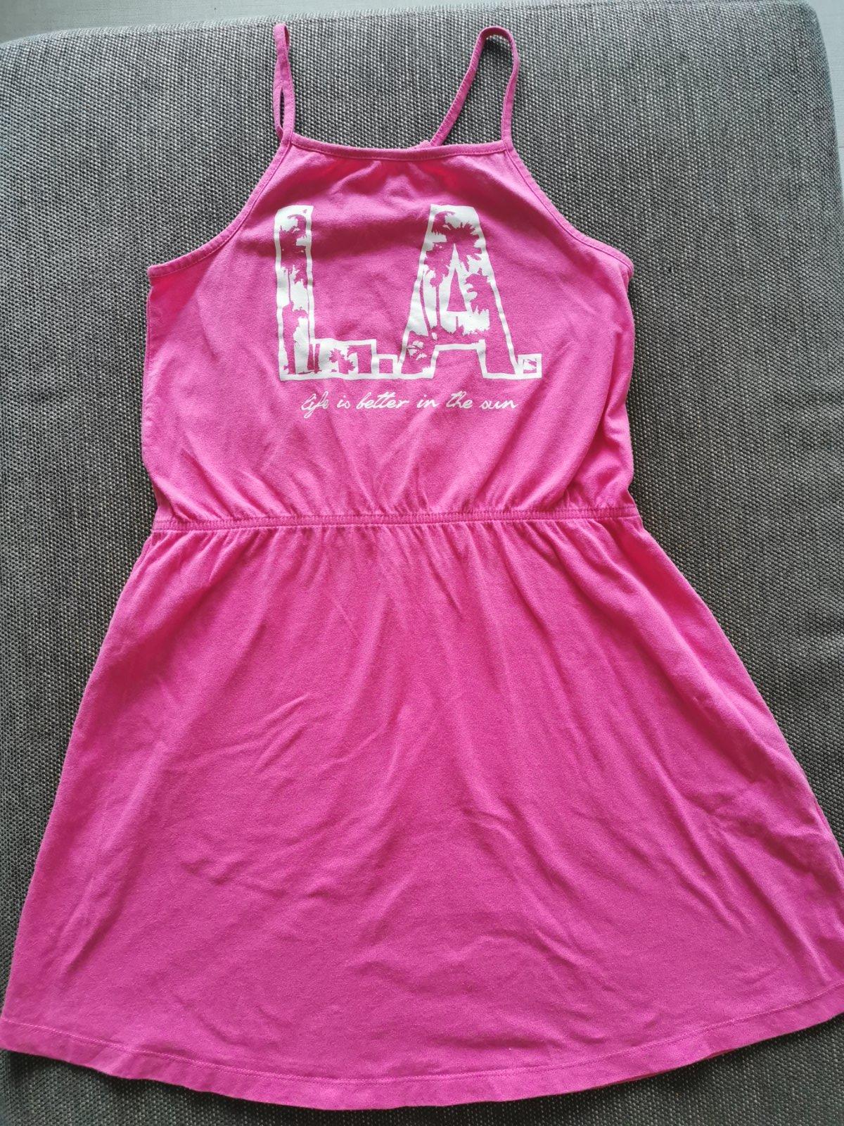 Suprové šaty na horúce letné dni, v páse gumička, bez poškodení, veľ. 146/152. Dĺžka je 80cm, pás v kľude je 2x35cm.