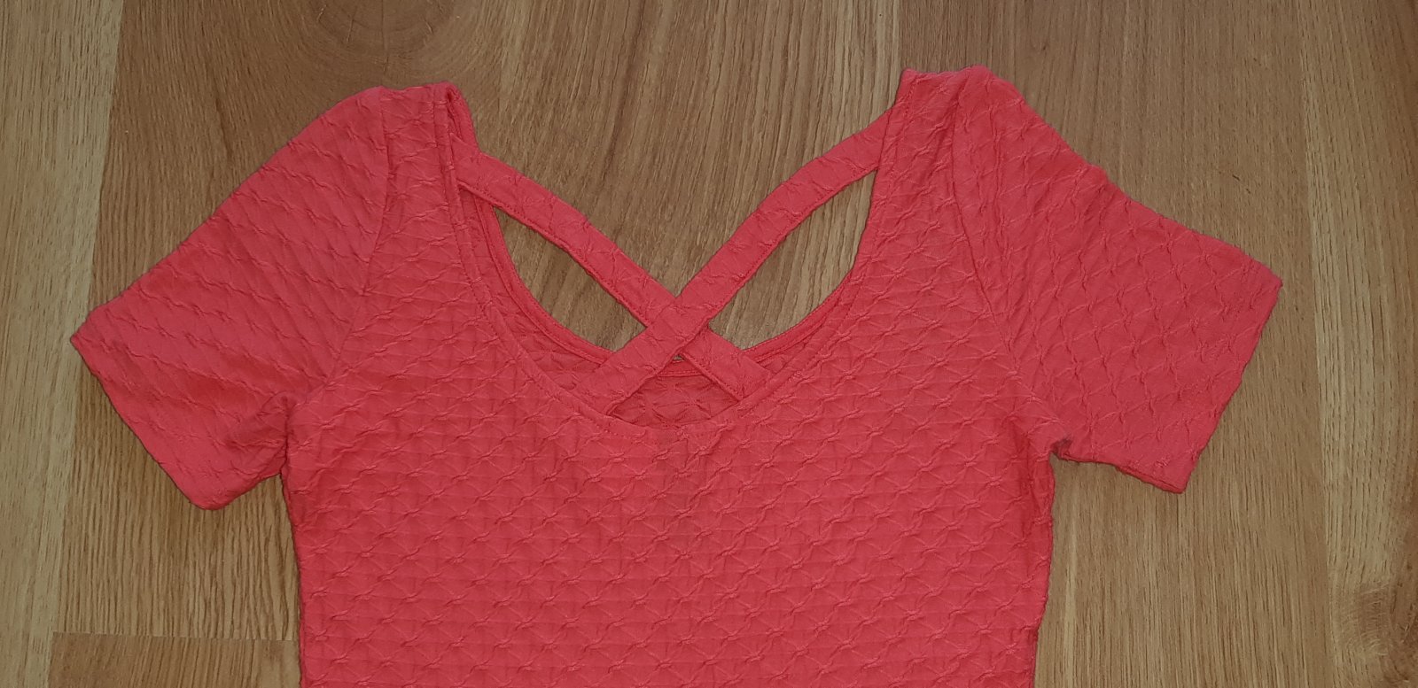 Vzadu je menší výstrih s prekríženými ramienkami.
