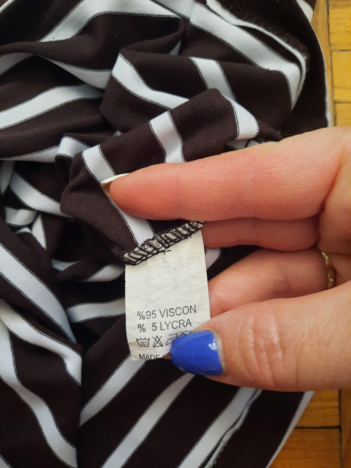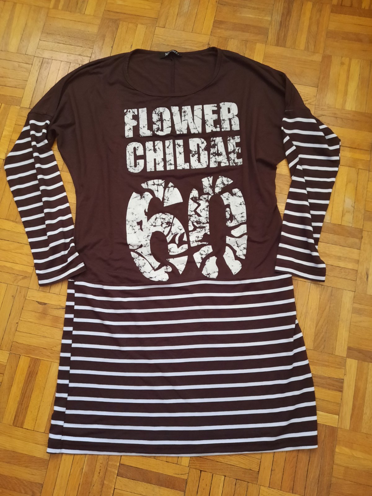 Predám šaty.Saty sú nové,len odstrihnúty štítok,nesadla veľkosť.Material taký tenký rebrovy uplet.Sedia skôr na menšie číslo.Sirka 37cm, dĺžka 84cm, rukáv od krku71cm.Nositelne ak ako dlhé tričko n...