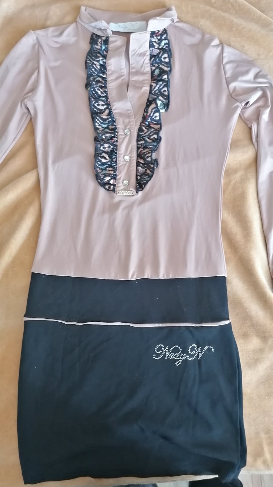 Dvojfarebné šaty s aplikáciou na pleciach