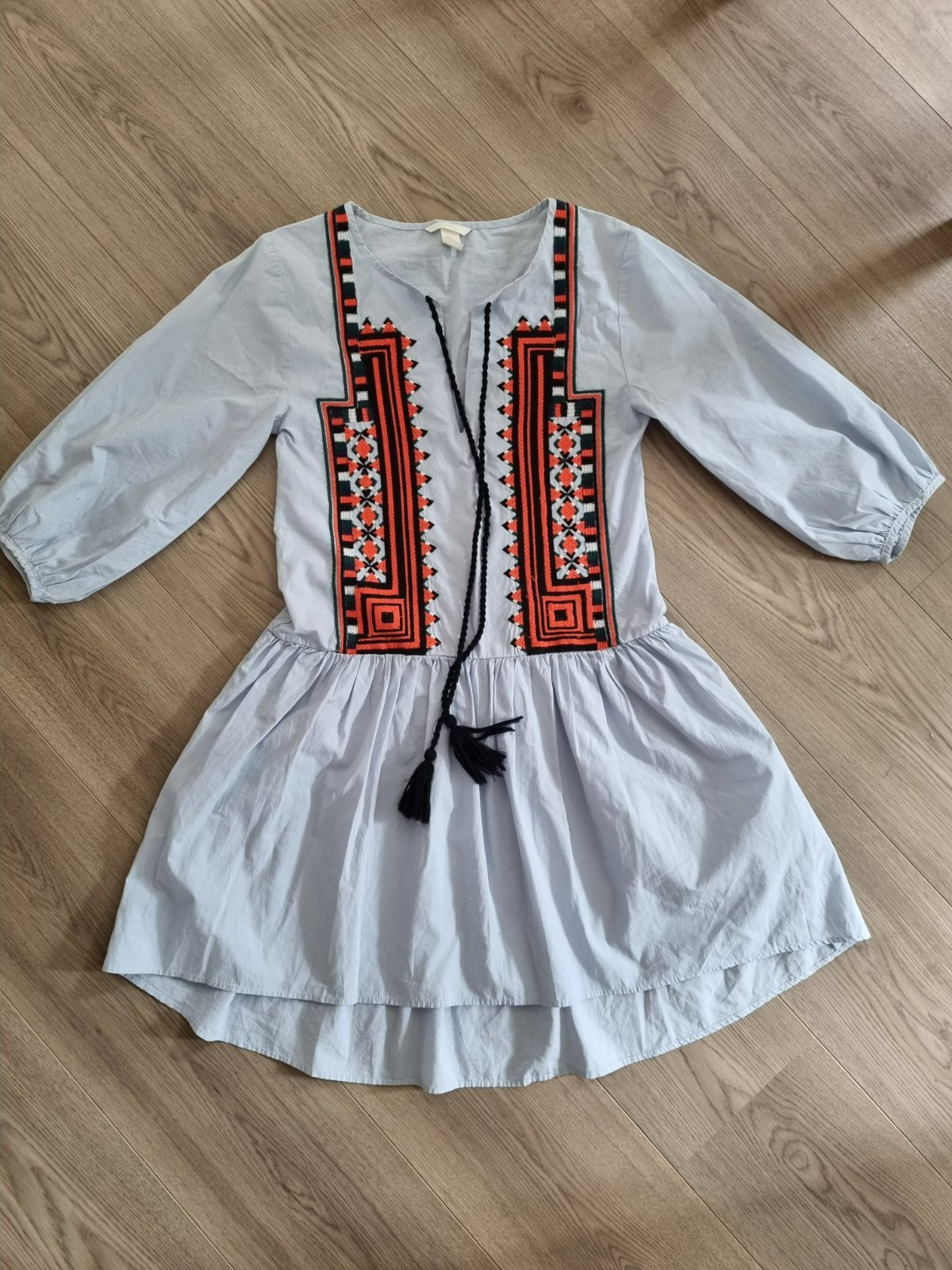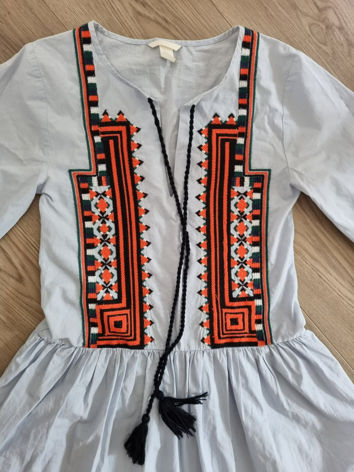 Velmi pekne šaty šedej farby so vzorom.100%polyester. super stav. se30 ROZMĚRY:vel.36,cez prsia 2x47,cez pas 2x47cm,cez boky 2x51cm,dl 82cm. ZNAČKA:H&M VELIKOST:36 POŠTOVNÉ A BALNÉ:3,5
