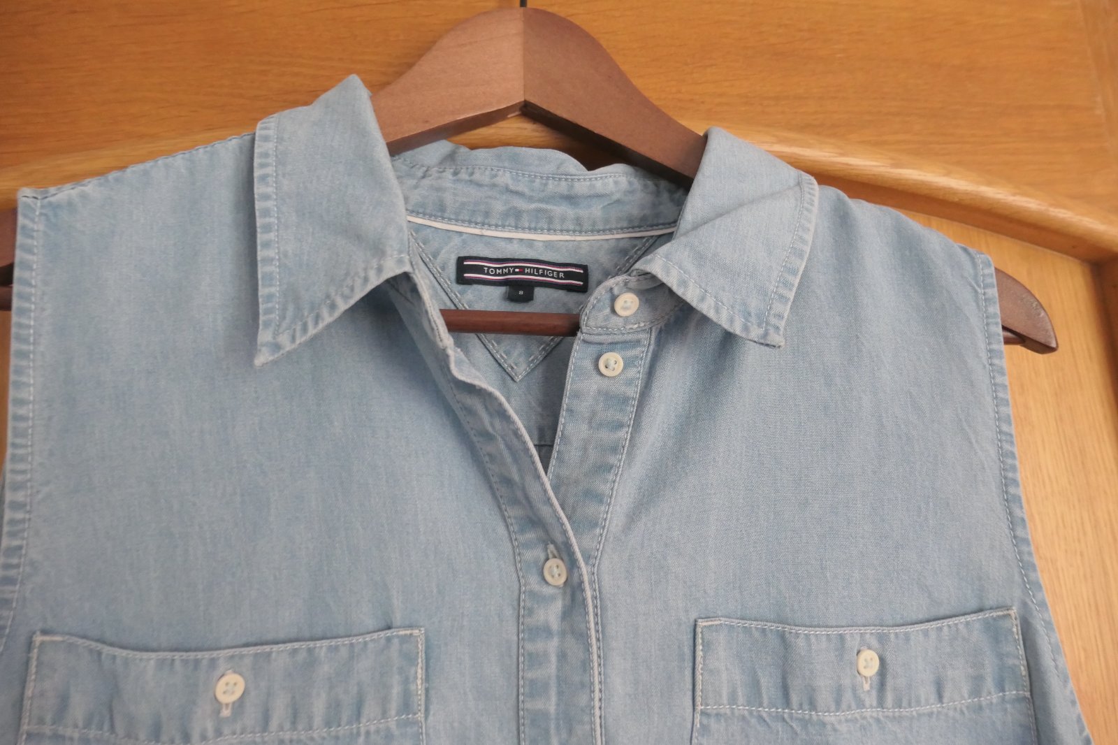 velkost uvedena 8, sedia na M/L, dva naprsne vrecka, dole kovove logo