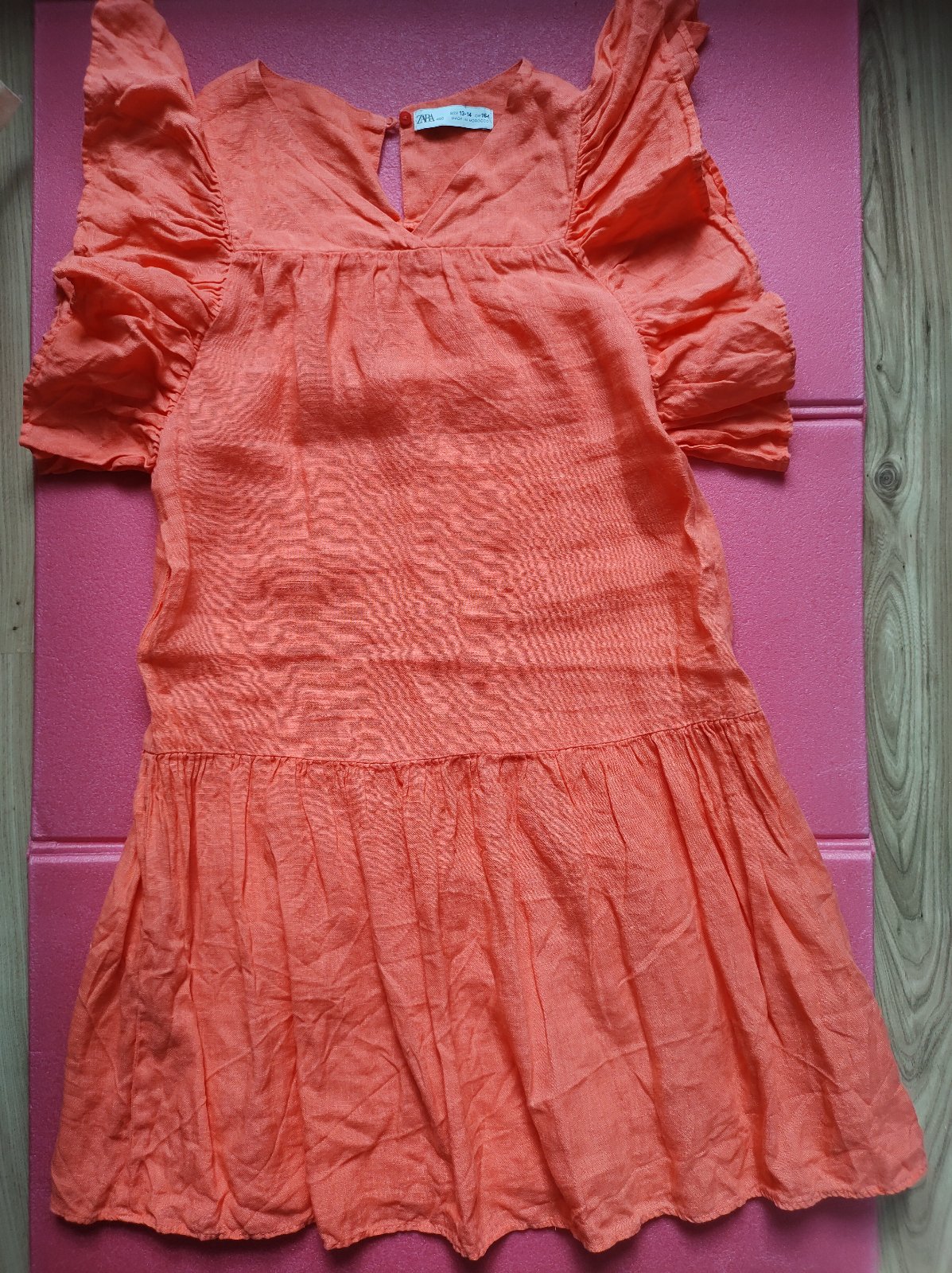 Ponúkam na predaj šaty značky ZARA, bez poškodení. Rozmery: šírka 2x43 cm a celková dĺžka je 79 cm. 100% LINEN. Žmolky. Šikovná maminka odžmolkuje. 😉