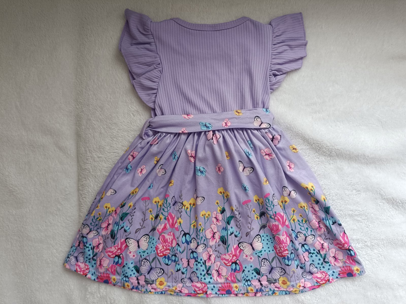 Krásne šaty pre malé dámy. S motívom Príjemné, pohodlné, netlačia voľný tričkový strih. Výborne sa nosia v lete na plavky alebo do každého počasia. Farba ako na fotografii. Rozmer: 92, 98, 104, 11...