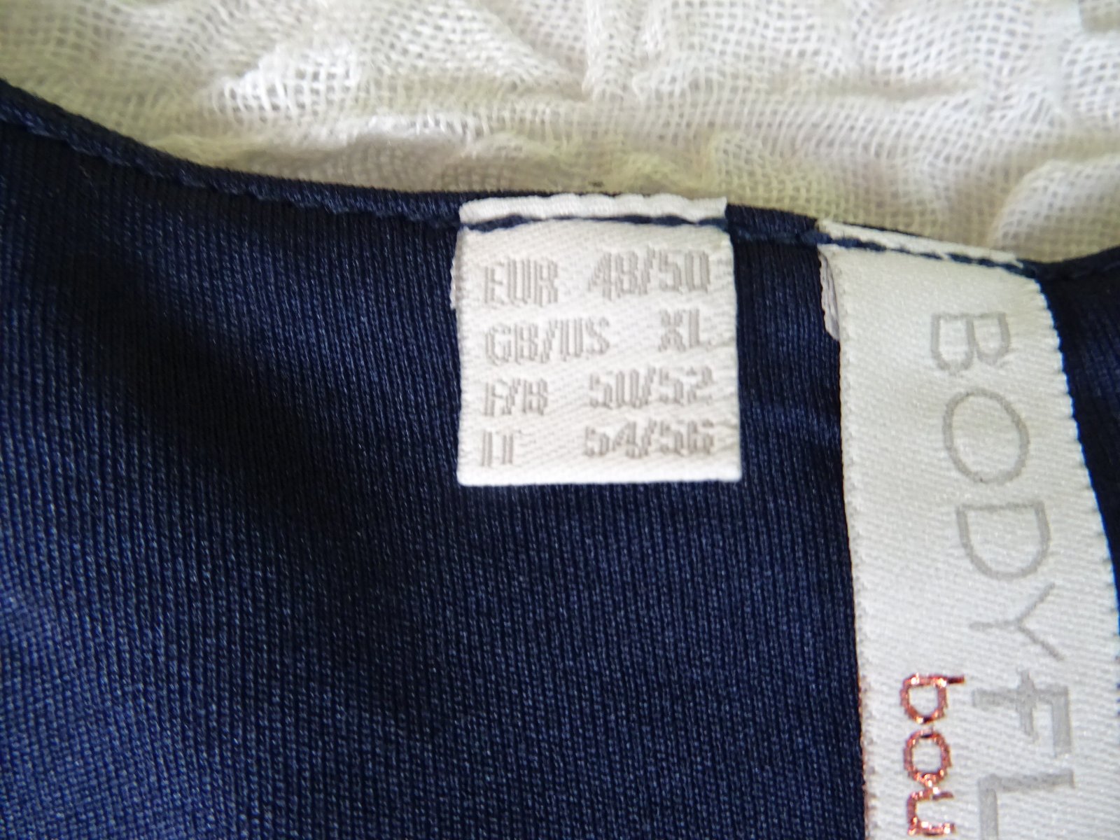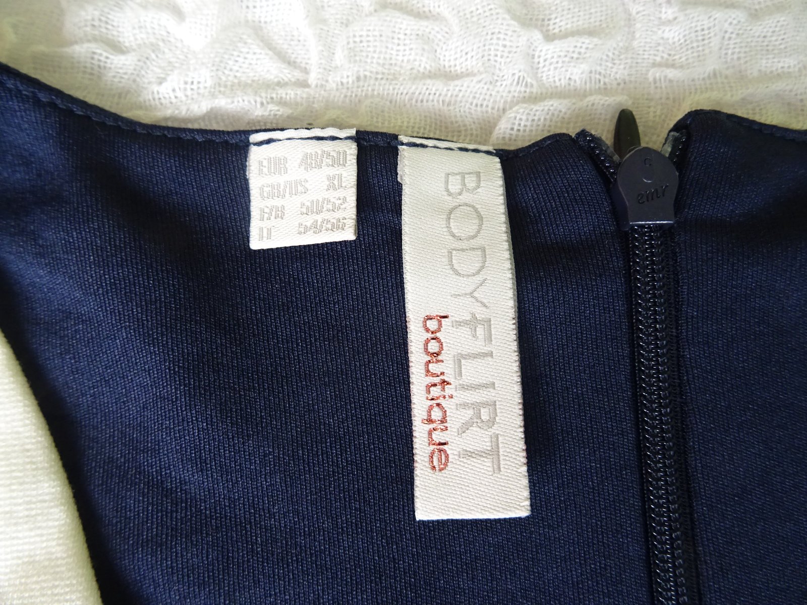 Krásne dámske šaty Bodyflirt, veľ. XXL, rozmery: dlžka 95cm, pod pazuchami 2x59cm, pás do 2x54cm, boky do 2x62cm. Šaty sú podšité, zapínanie vzadu na zips.