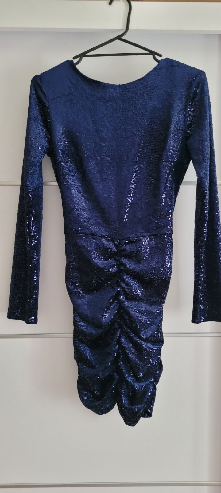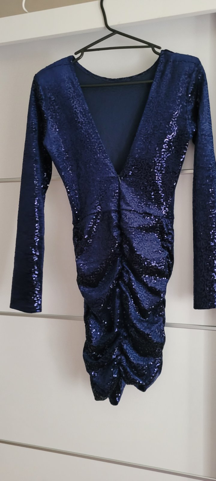 Krasne,prilezitostne oblecene saty. Su z hrubsej,pevnej latky,krasne drzia tvar do acka.Znacka AX Paris,ligotave.Farba ako na 1. foto.Velkost 36-38.