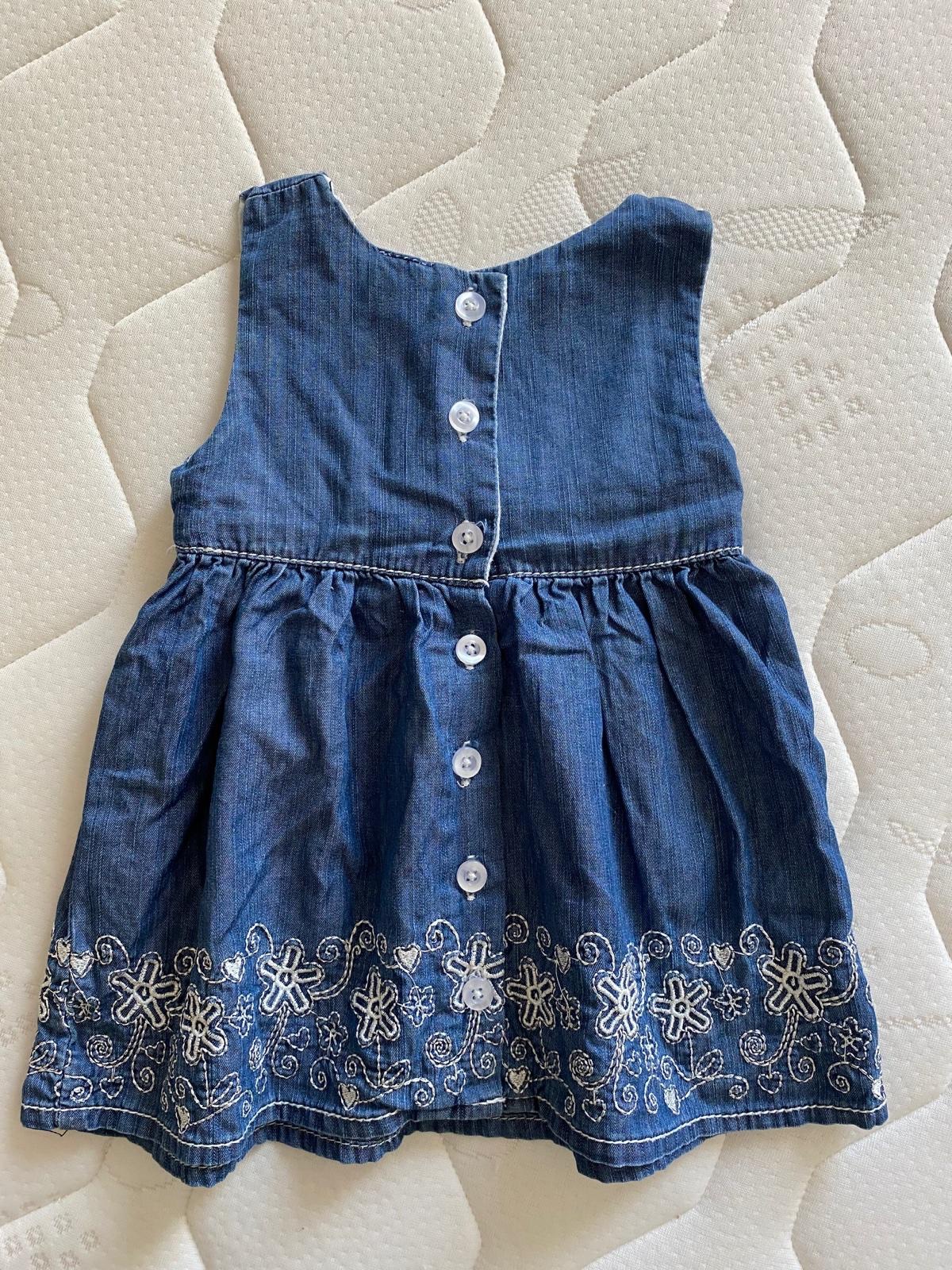 Riflové šaty s bielou výšivkou