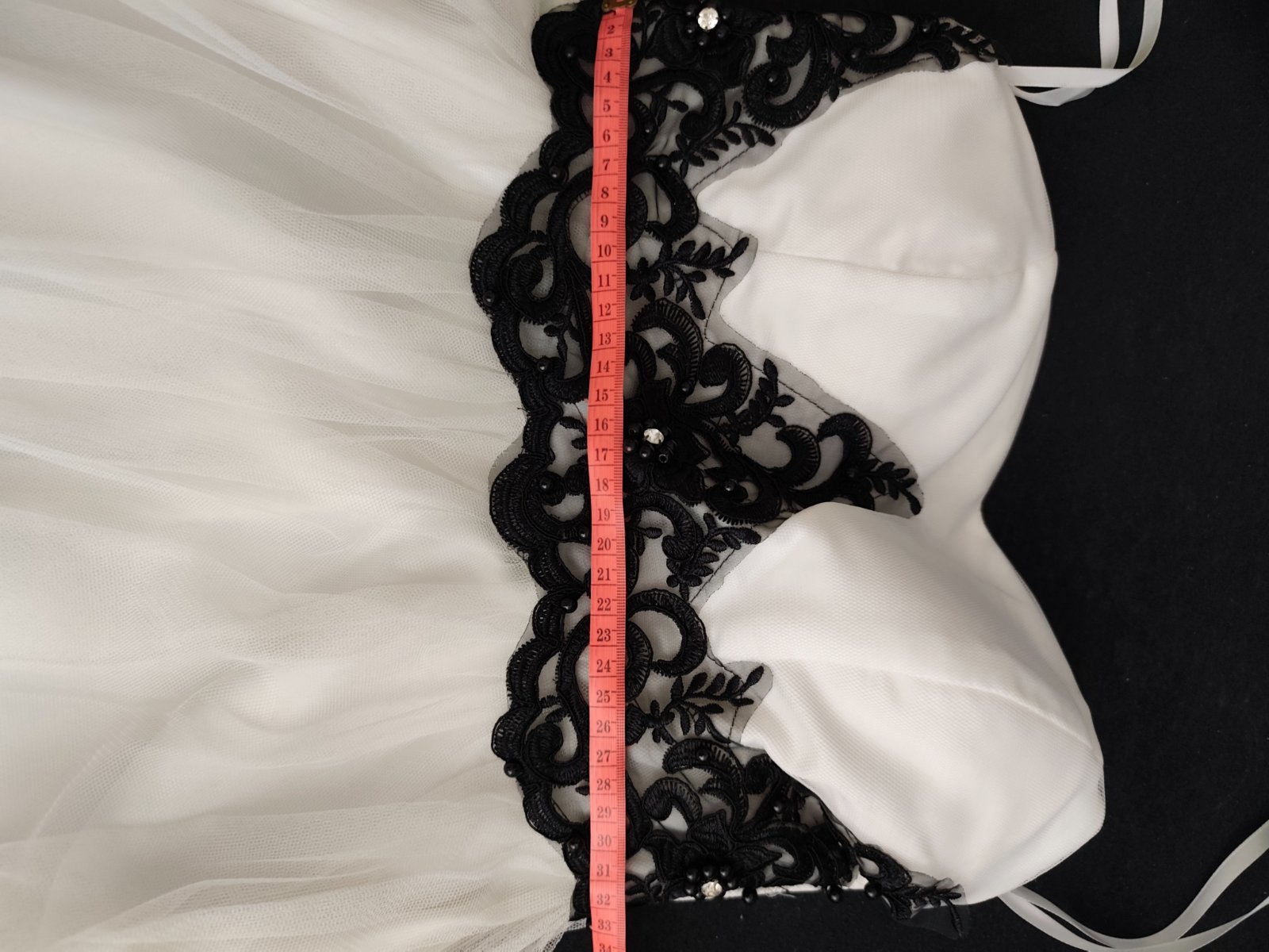 Šaty boli oblečené 1x. Sú vo výbornom stave. Sedia na dámsku veľkosť 36, ale aj menšie. Šaty sú saténové, suknička má 2 vrchné diely akoby z naškrobenenej organzy s našitými kamienkami. Na chrbte ...