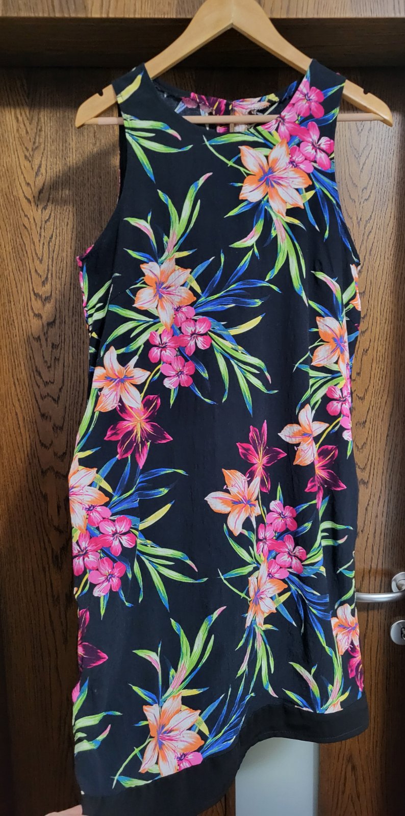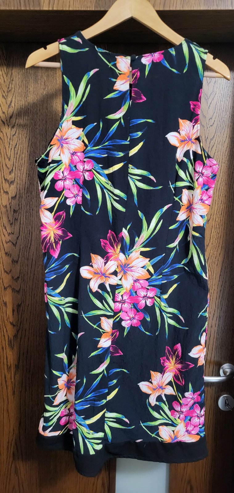 Nové šaty. Zaujímavý výstrih, vzadu rázporok. Nesadla mi veľkosť, sú mi voľné. Rozmery nafotené.