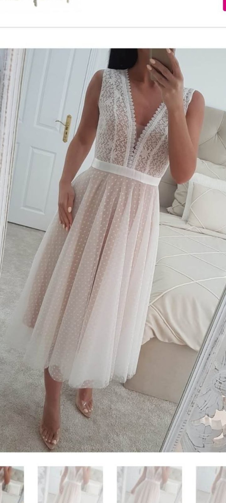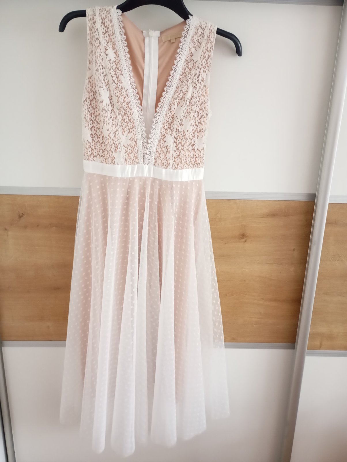 Krásne béžovo-biele spoločenské šaty, použité 1x, bez poškodenia, ako nové:)