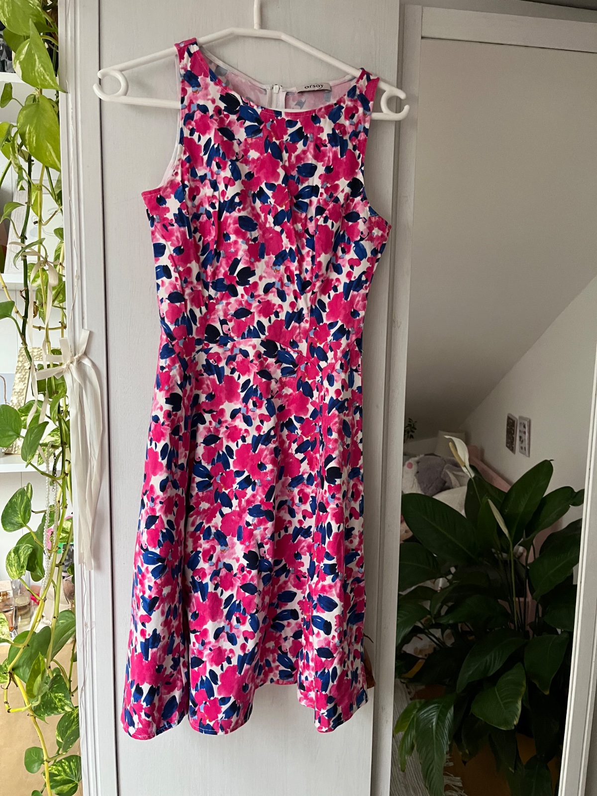 Letné šaty z Orsay,veľkosť XS,šírka cez prsia 41cm,šírka cez pás 34cm a celková dĺžka šiat je 92cm. Majú ováranie zboku na zips,čiže sa ľahko obliekajú a sú podšité tenučkou spodničkou,vďaka čomu n...