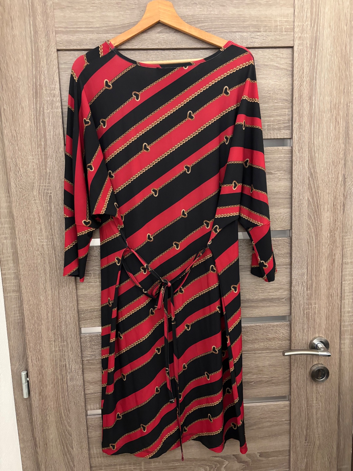 Náherné šaty, zozadu celé čierne, veľmi super materiál, super stav, oblečené párkrát, pohodlné, teplé - dlzka 96.pod pazami 2x45.v pase 2x41, rukav od krku 48