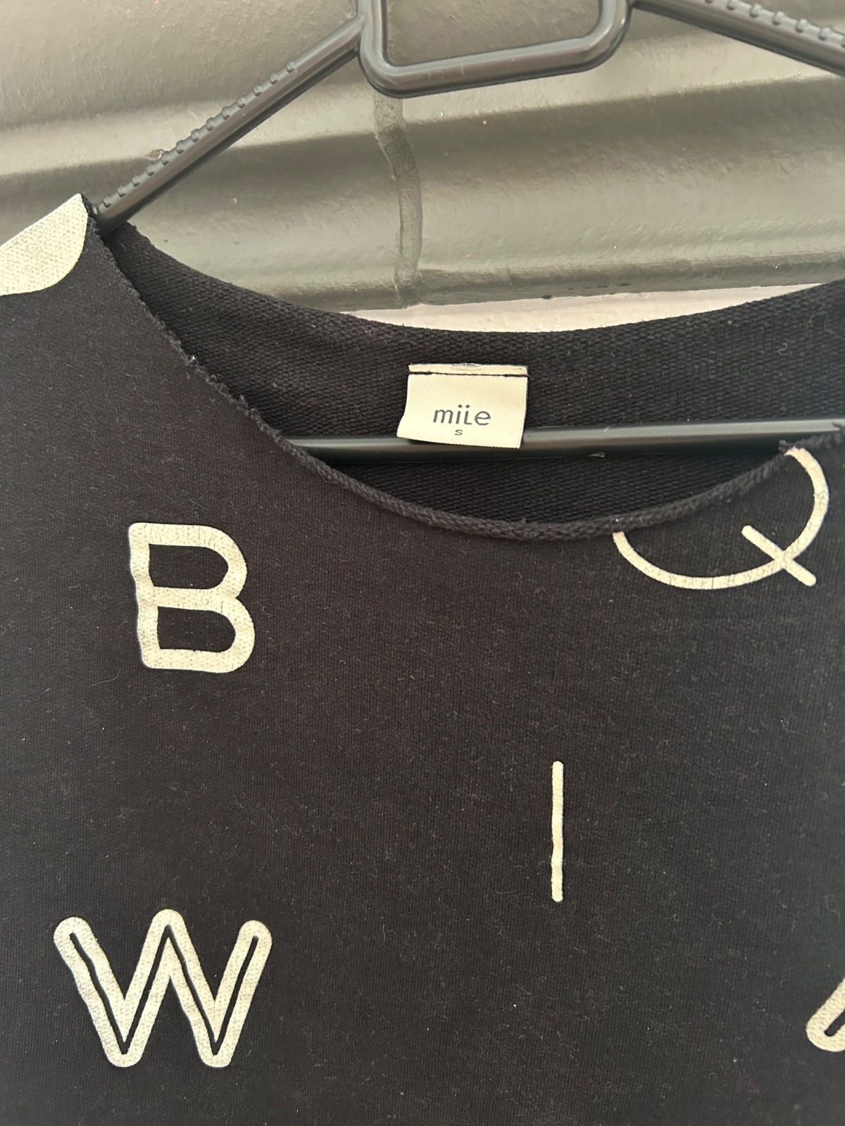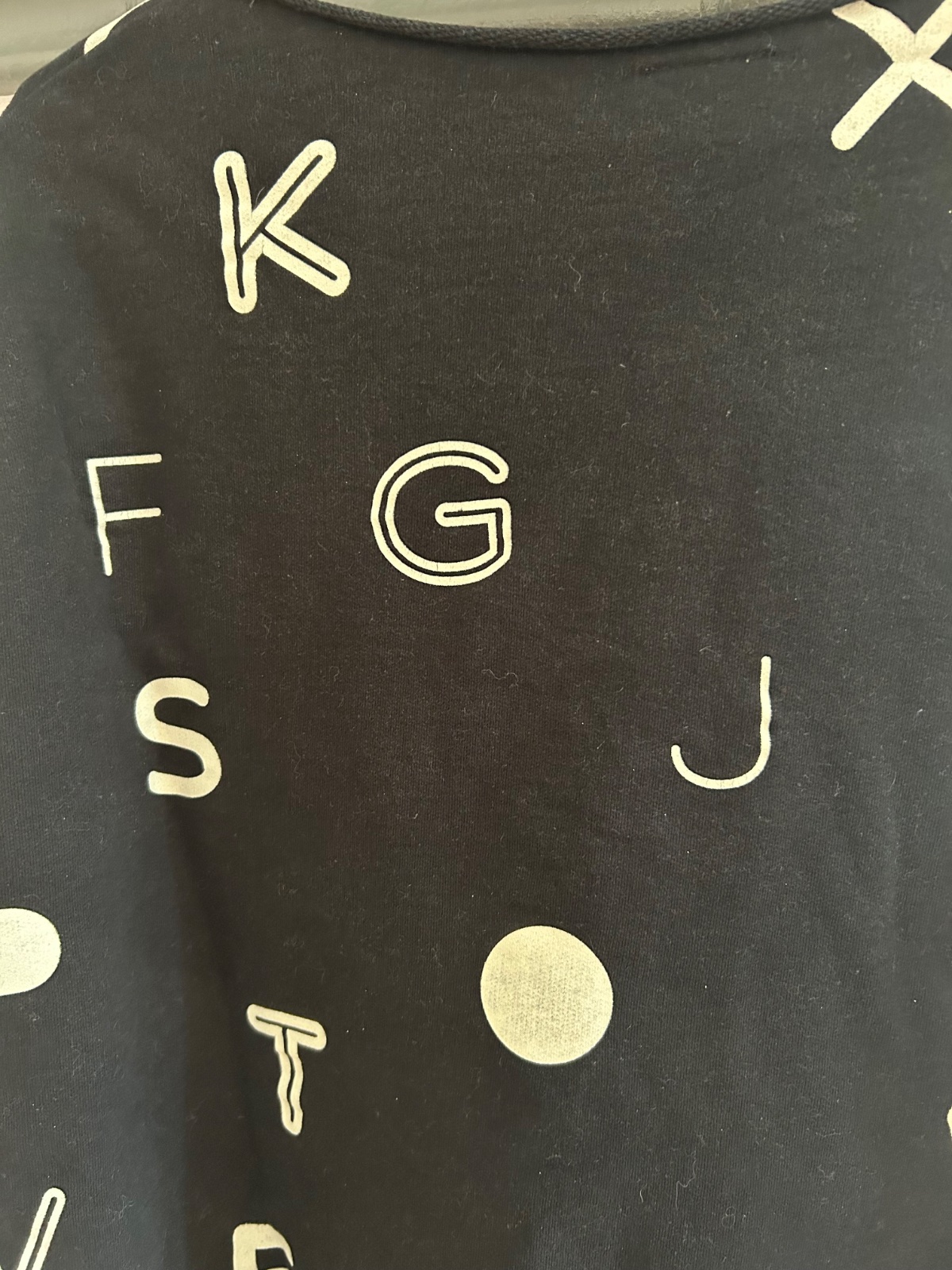Pismenkove saty od Mile, maju vrecka, velkost S. Stale pekny stav aj ked potlac pismenok uz nie je 100%.