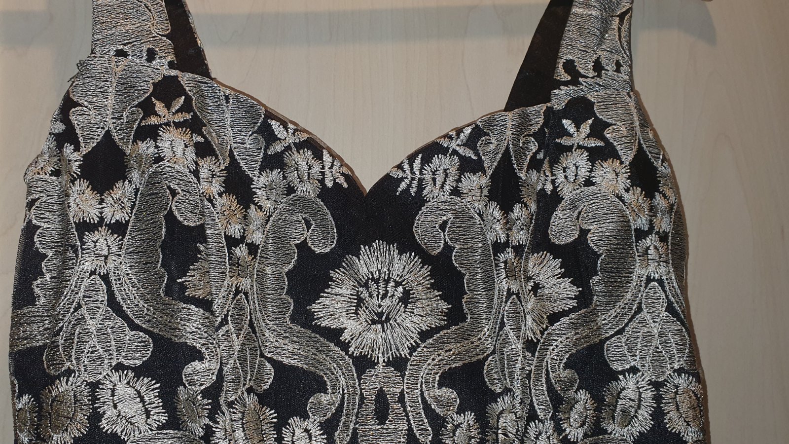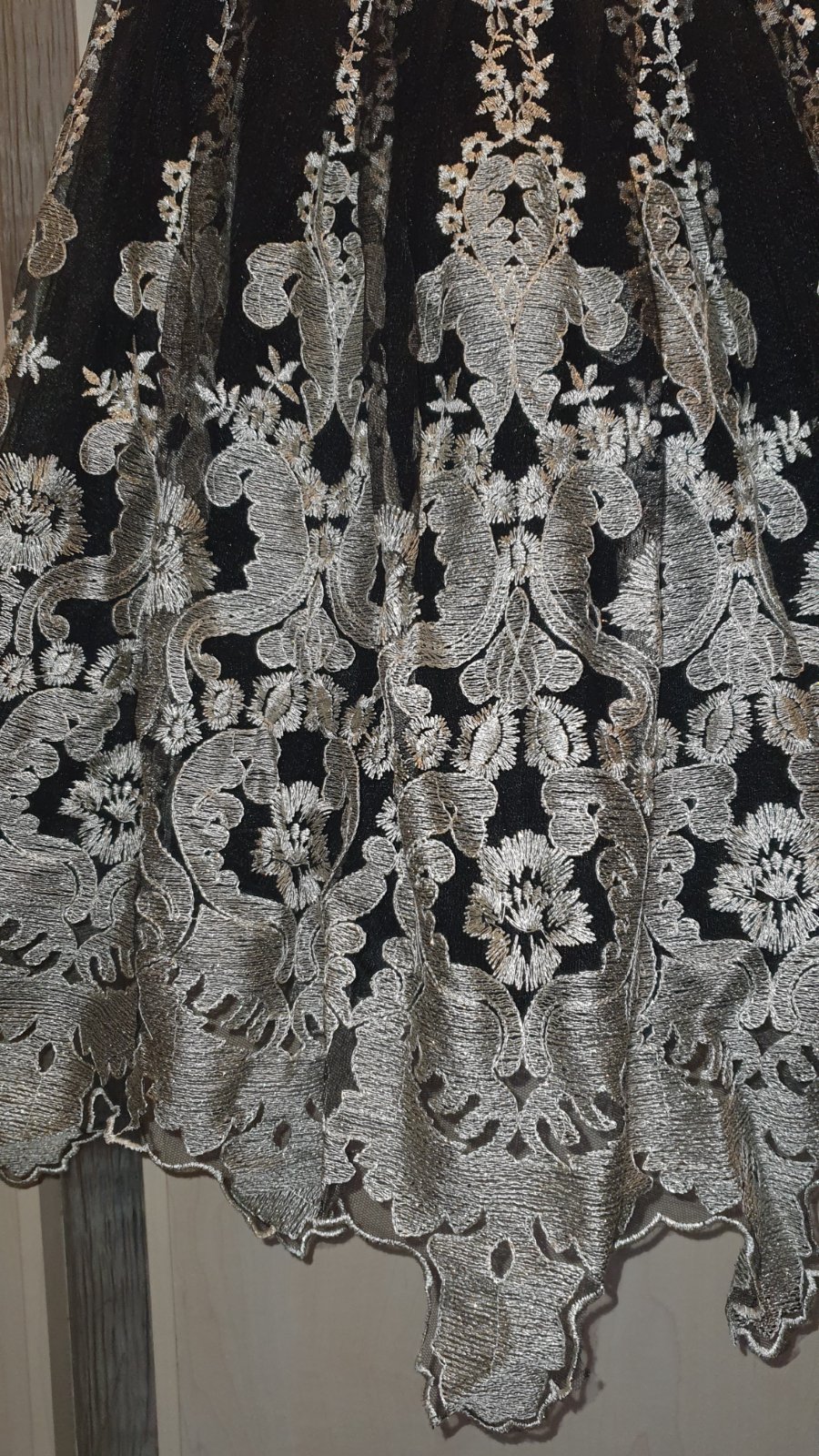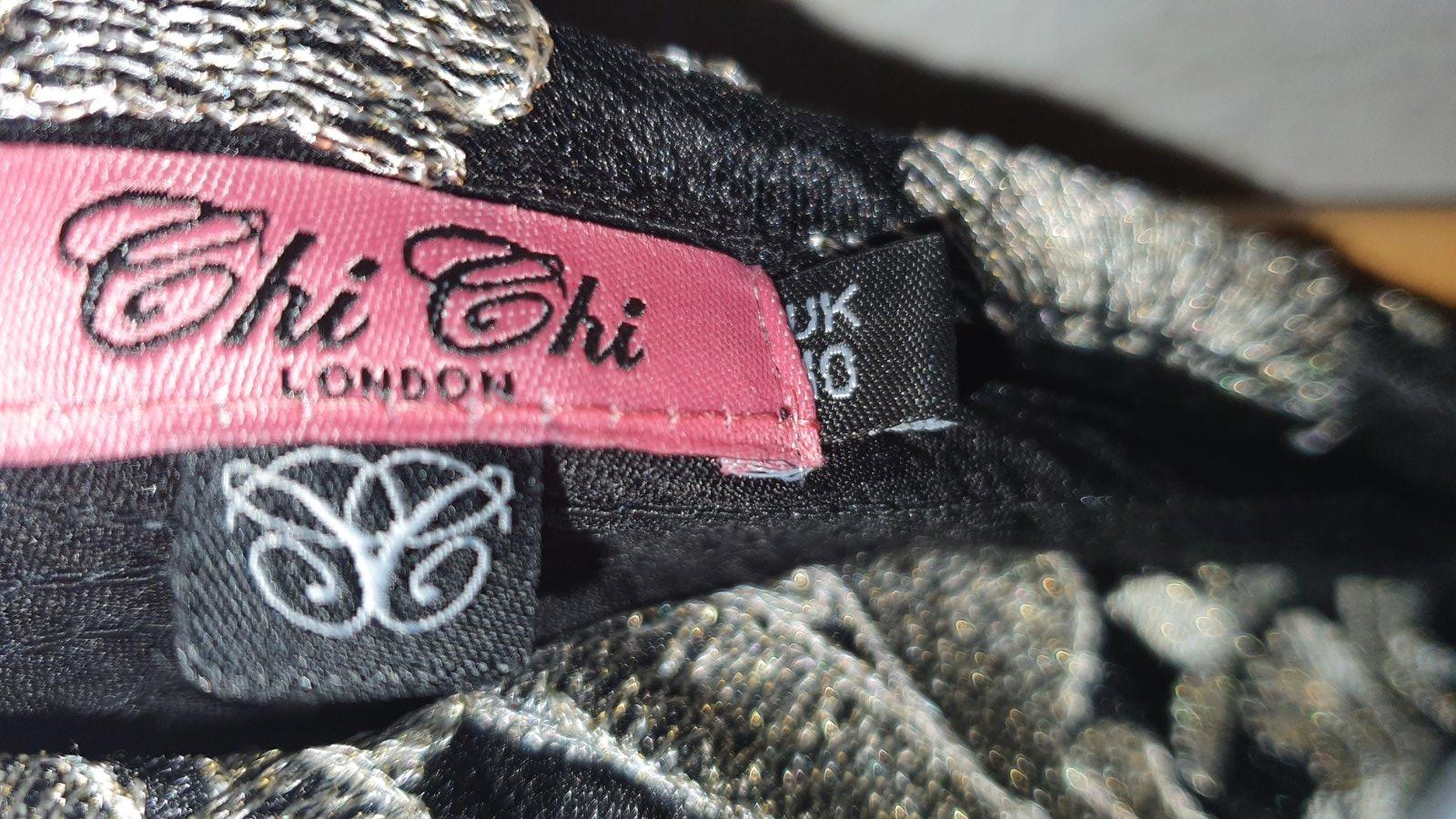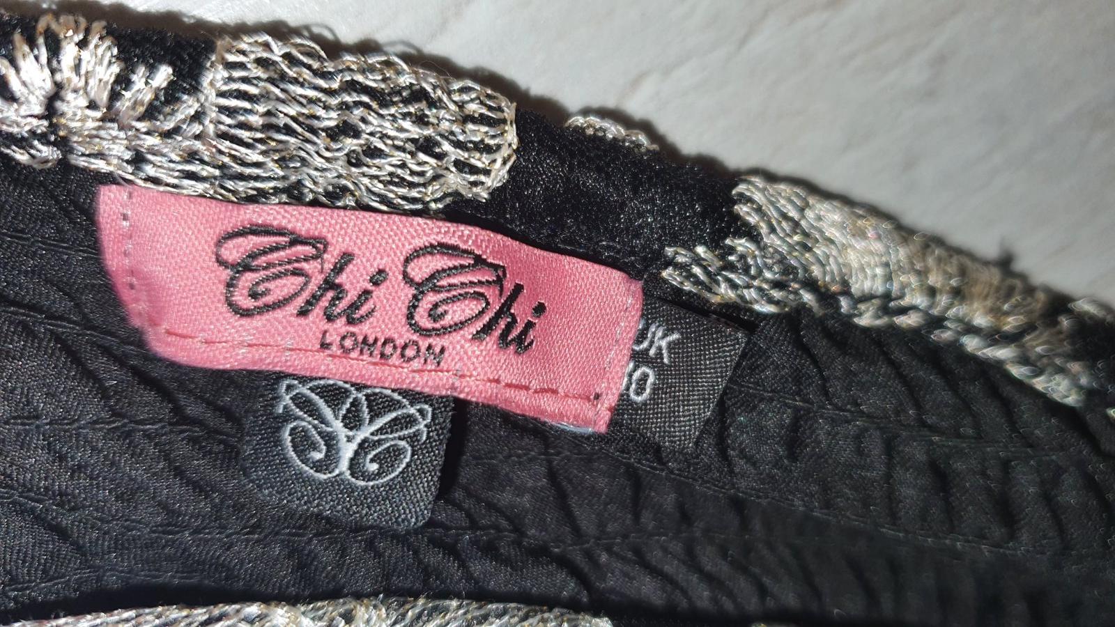 Nadherne spoločenské šaty značky CHI CHI LONDON. Farba čierno zlatá. Vzadu maju gumickovanie takže sa natiahnu, so spodnickou a tylom aby sukna pekne ukazala. Pouzitie nevidiet, boli max 3x použite. Velkost 10, vyhovuje velkosti medzi S-M. Pridavam velkostnu tabulku vyrobcu. Postovne nie je zahrnute v cene.
