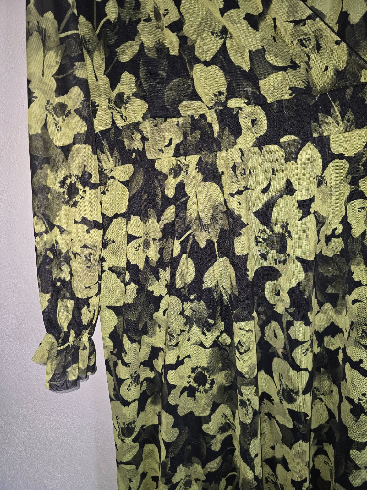 zelené kvietkované šaty, veľkosť m-l, áčkový strih v páse gumička, oblečené asi 3x