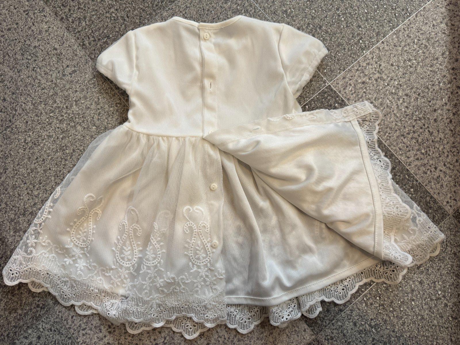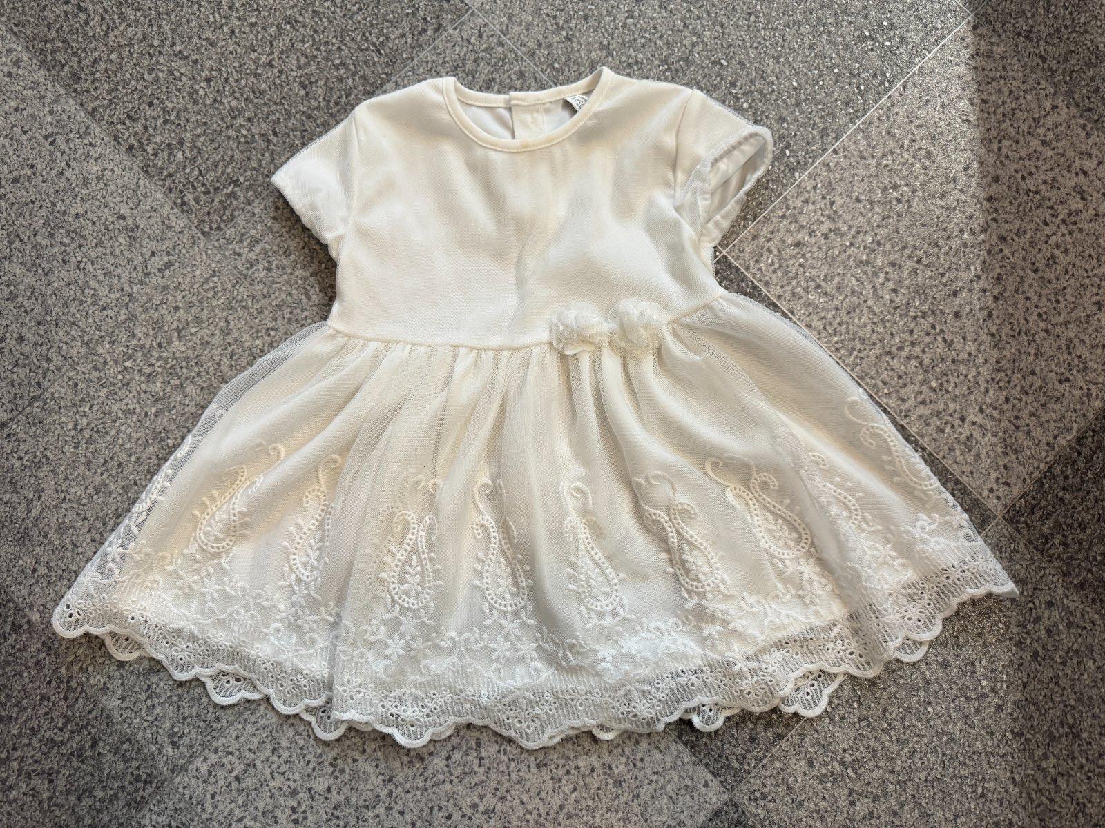 Krásne krajkové slávnostné šaty, v slonovinovej farbe, vhodné aj na krst. Sadnú na veľkosť bábätka 68-80. Oblečené boli 2x.