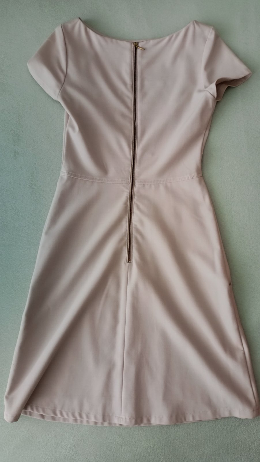 Pekné Orsay šaty béžovohnedej farby, veľkosť 34, rozmery na fotkách. Ja nosím 36/S a pri prvom obliekaní povolil vnútorný šev na chrbte, viď poslednú fotku. Inak nepoužité, keďže sú mi malé. Vhodné...