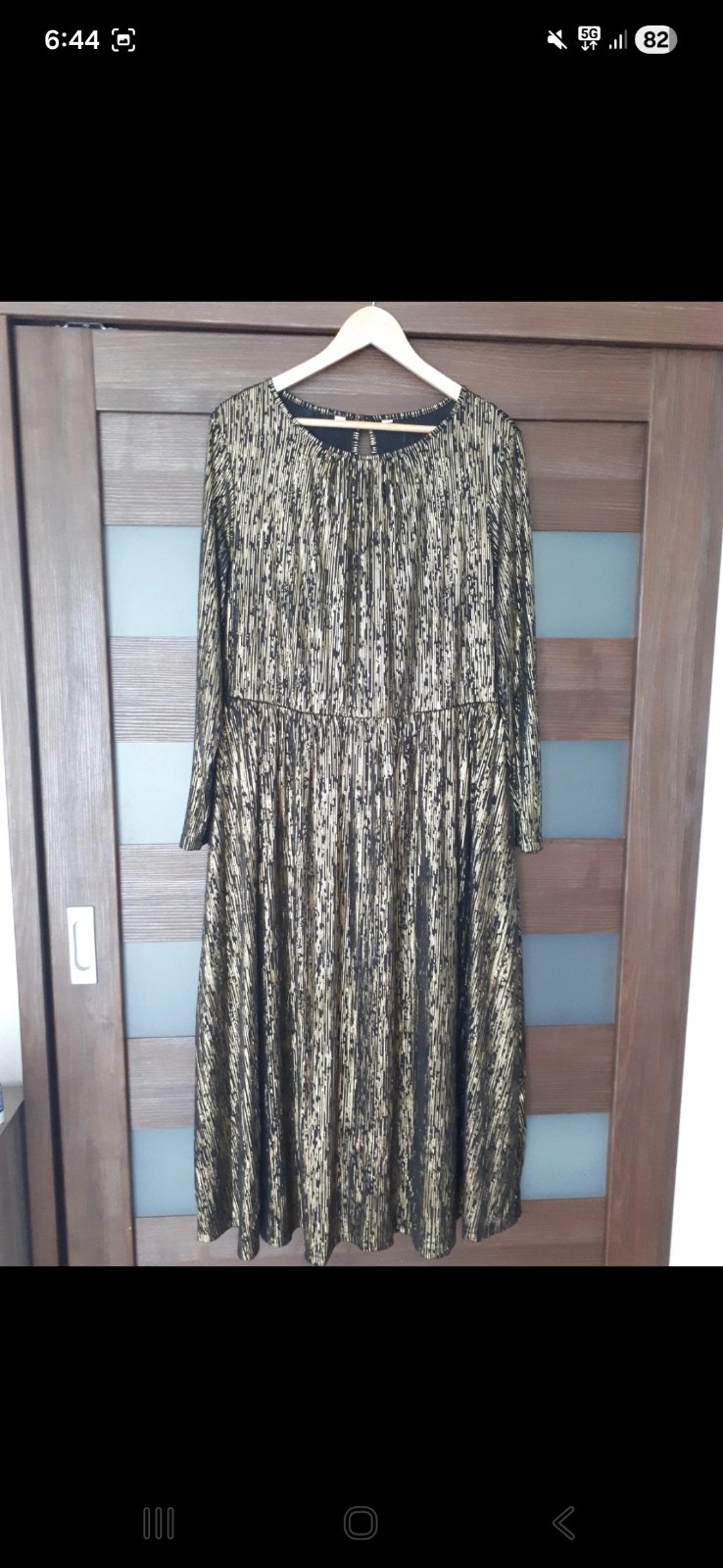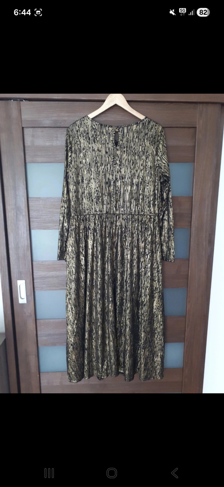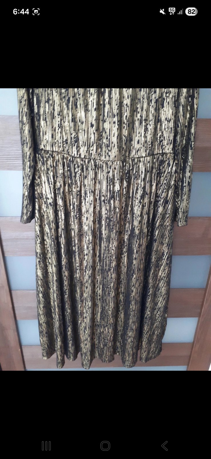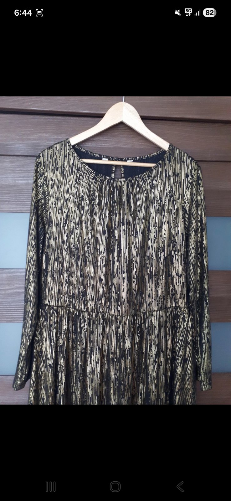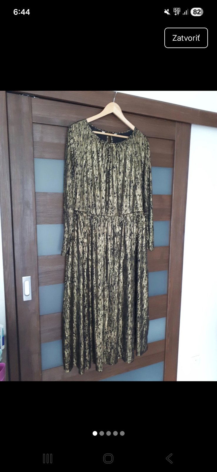 Top stav, 2x oblečené. Krásna žiarivá zlatá farba. V páse je gumka, trochu povolí, hrudník je viac elastický. Je to dvojčíslie 44/46.