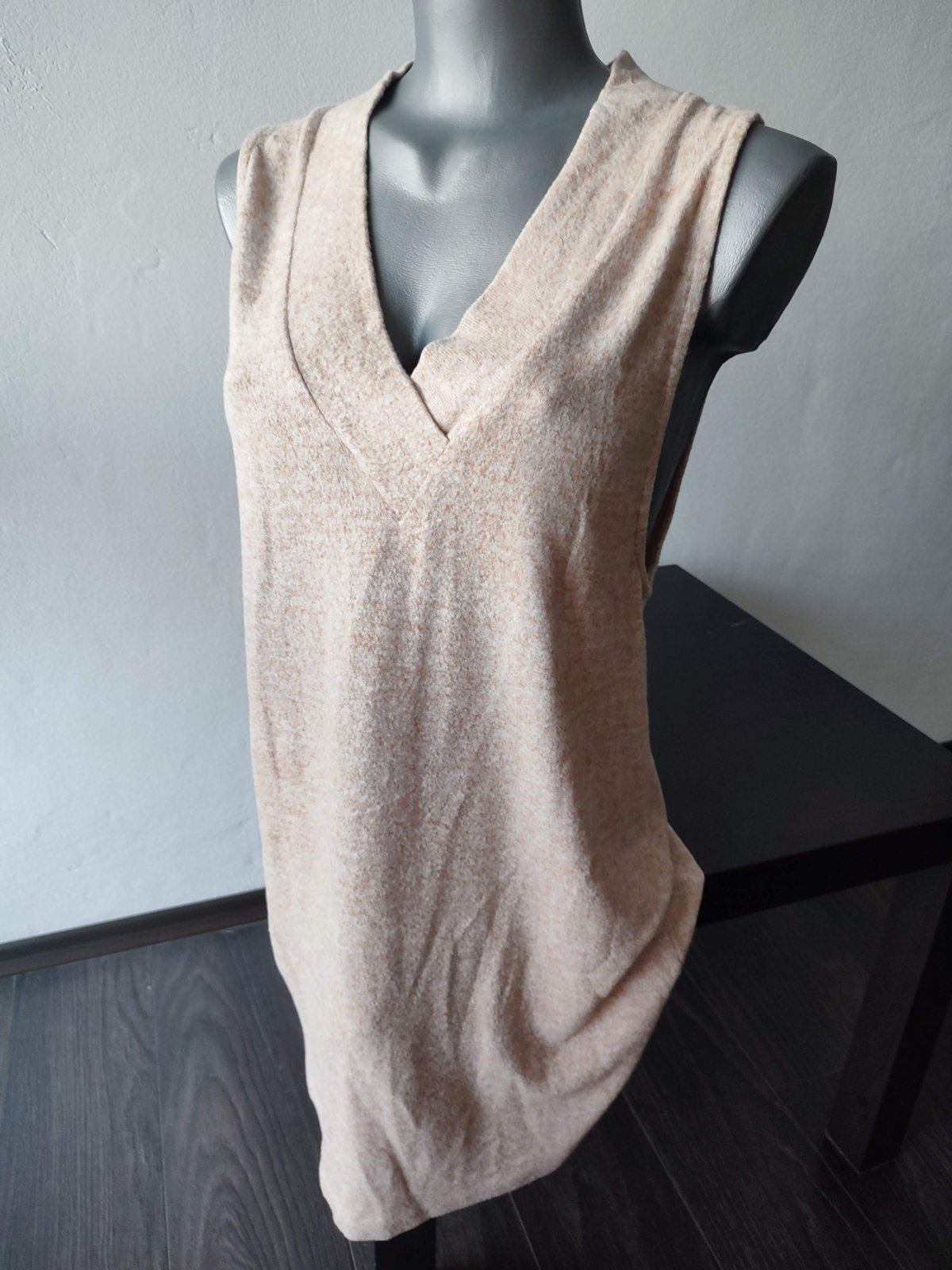 Minišaty v šedej farbe pretkávanej striebornou niťou, dĺžku majú 79 cm takže ich môžete nosiť aj ako predĺžený top k legínam. Značka Stradivarius, veľkosť písaná S. Cena + poštovné prevodom alebo...