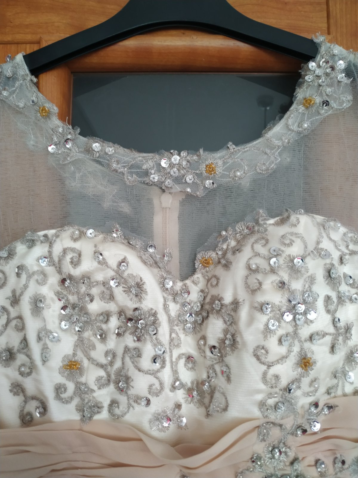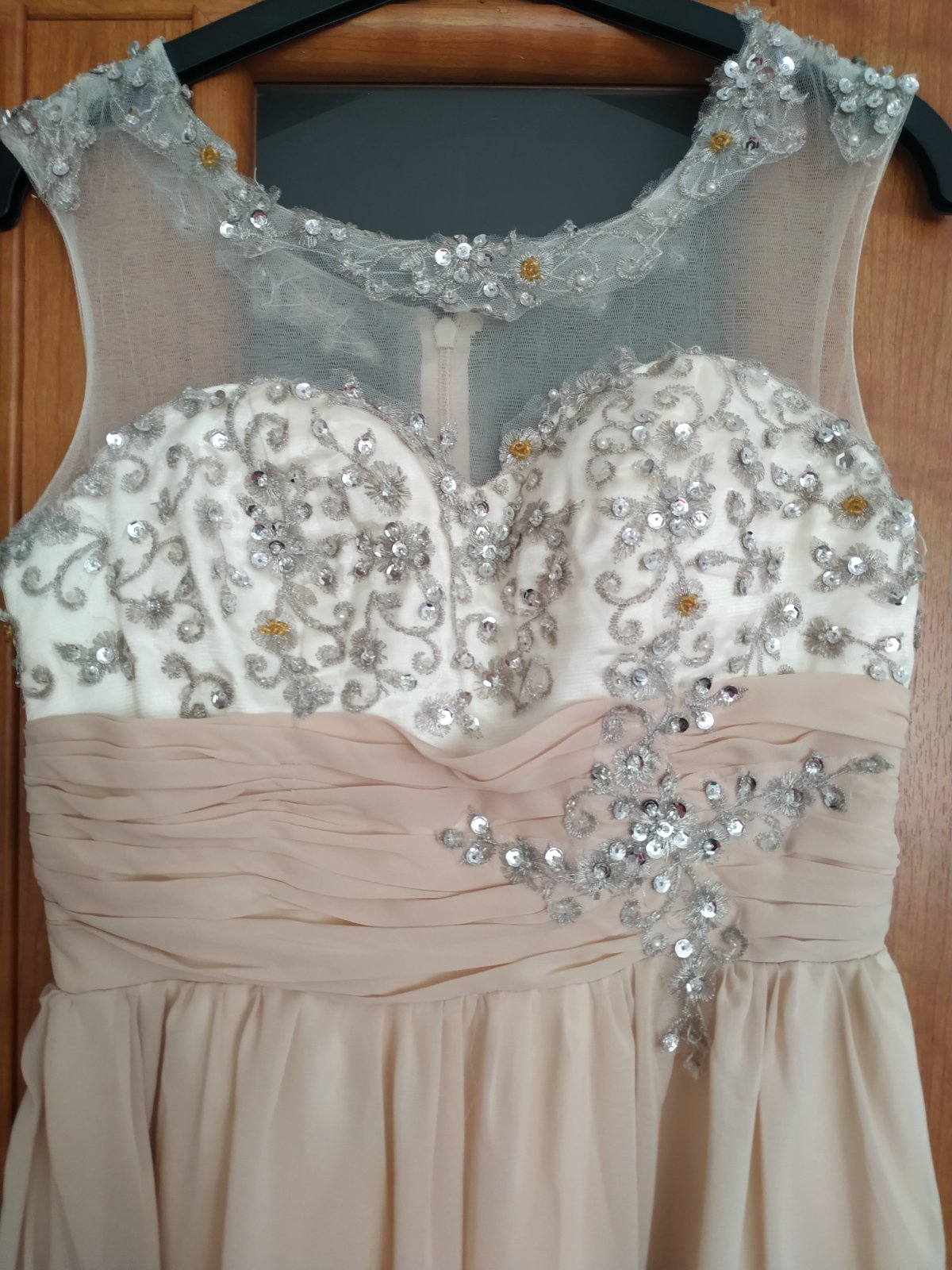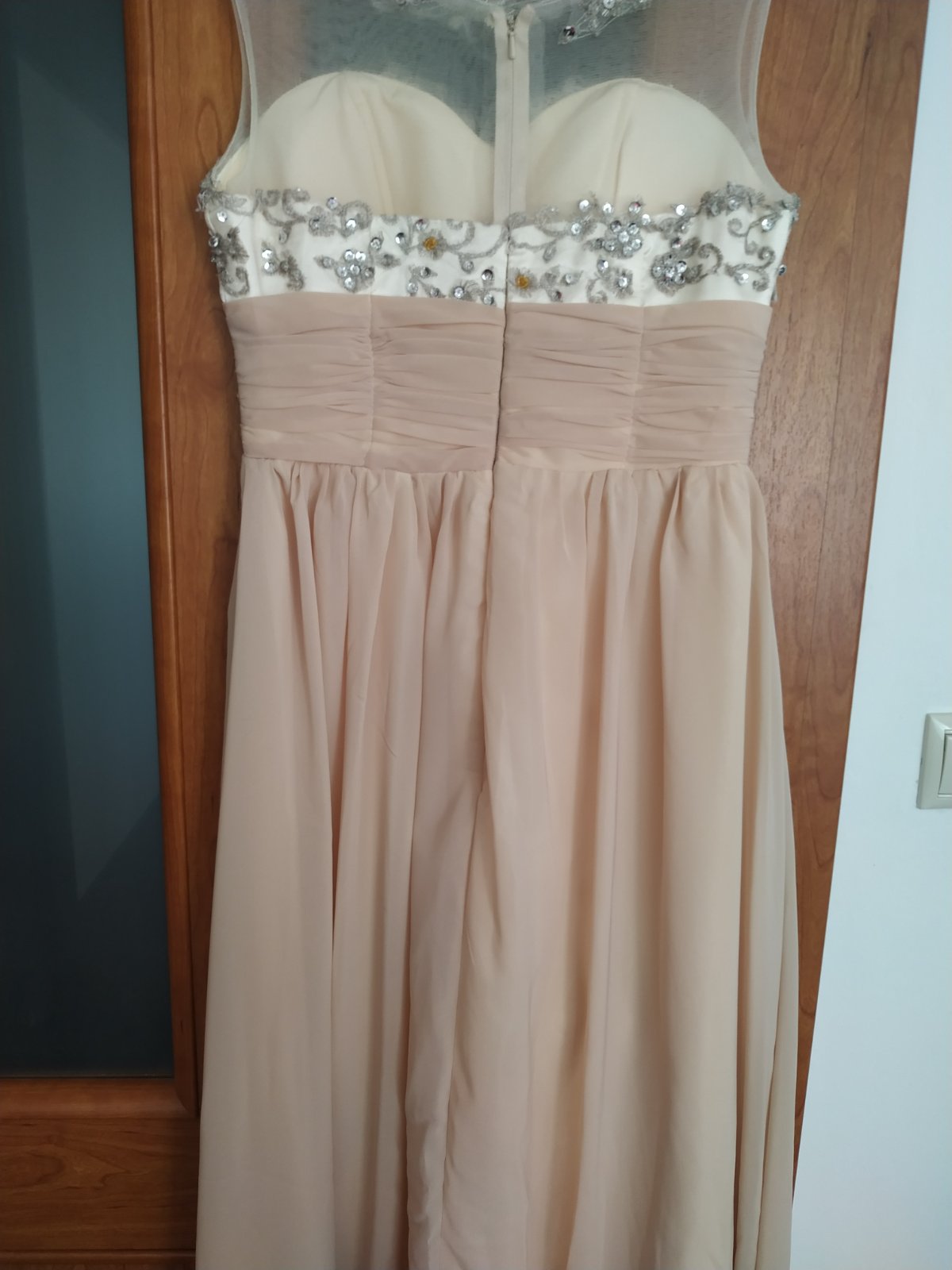 Z ťažkým srdcom predávam moje krásne, vysnívané, dokonalé šaty šité na mieru vo veľkosti XS/S.boli použité 3h sú bez poškodení. Farba béžovo-zlata, cena 150,pôvodná oveľa väčšia. Majú dlhú vlečku, ...
