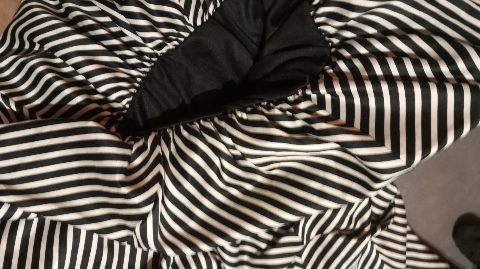 predam malo nosene saty, Ackovy strih, su na zaviazanie okolo krku, vzadu su elasticke, prsia 37cm, pas 35, boky 40cm, dlzka 80cm, je ku nim aj cierna masla, ktora sa viaze na bokoch, su tam aj putka