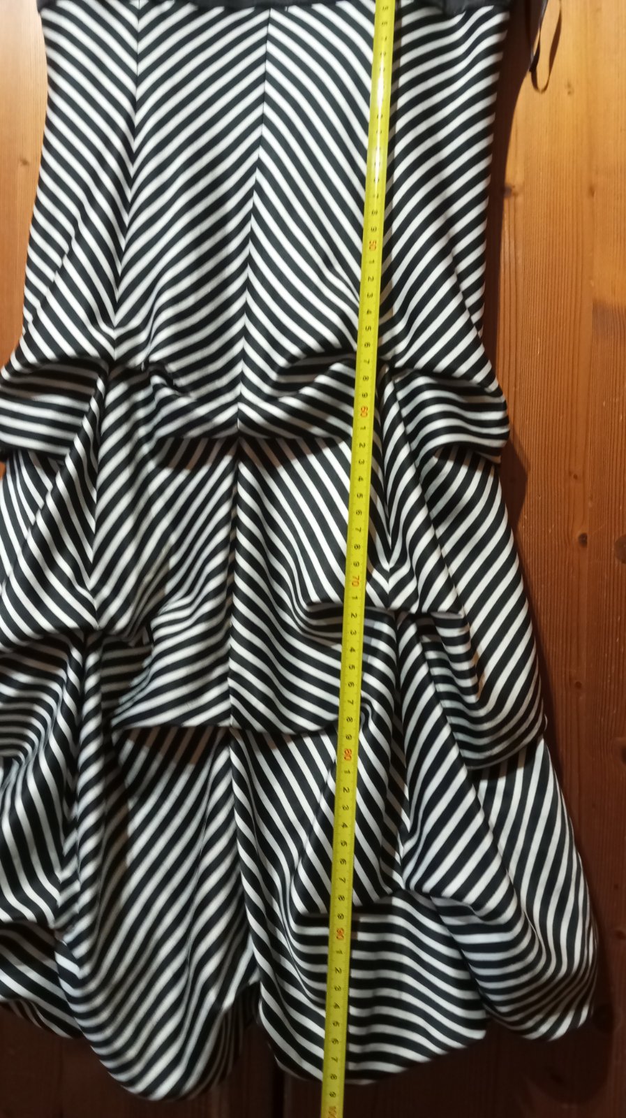 Šaty sú vo výbornom stave. Asi 2 x oblečené. Miery na fotkách. Výrobca uvádza veľkosť 38, podľa mňa je to 36, riaďte sa mierami.