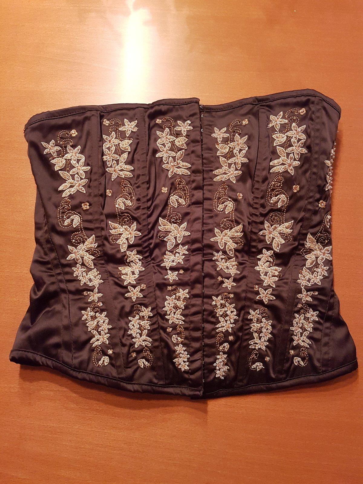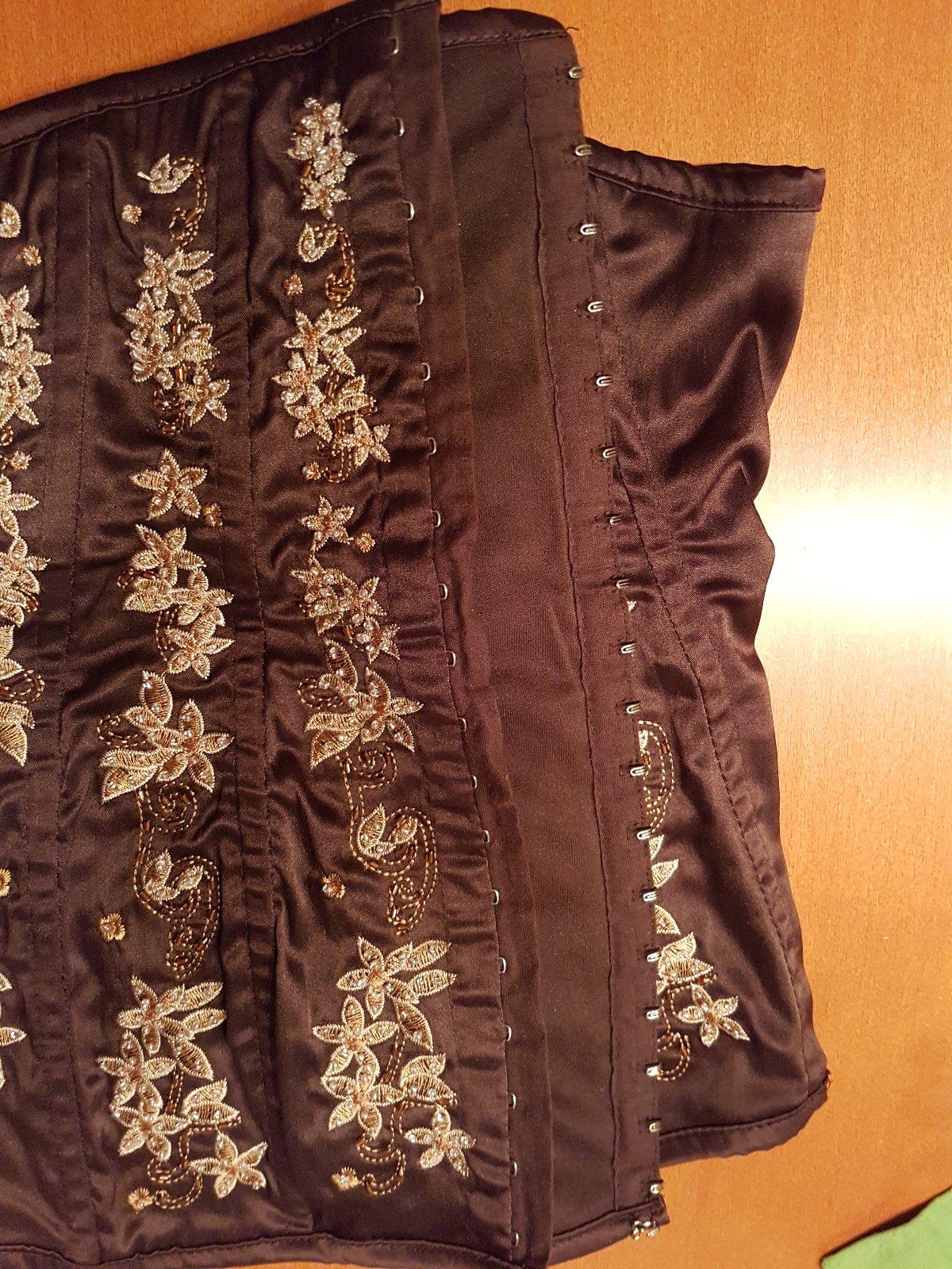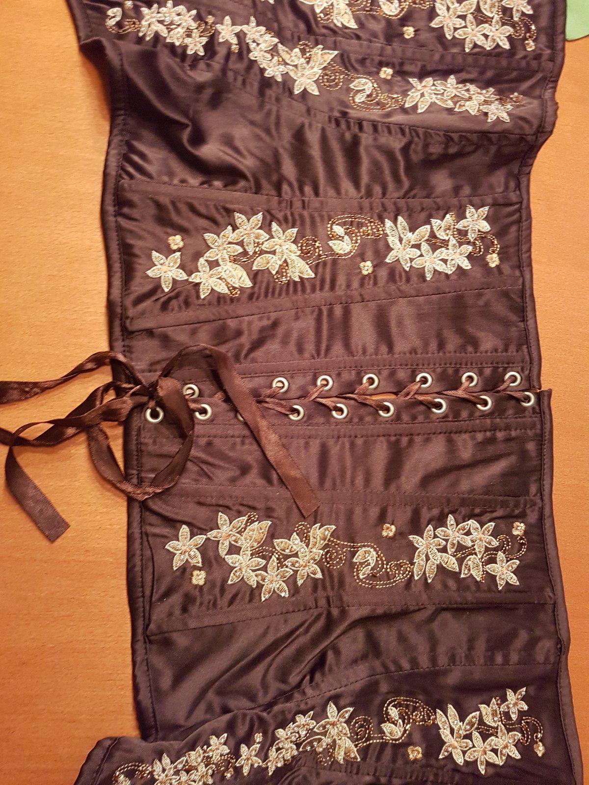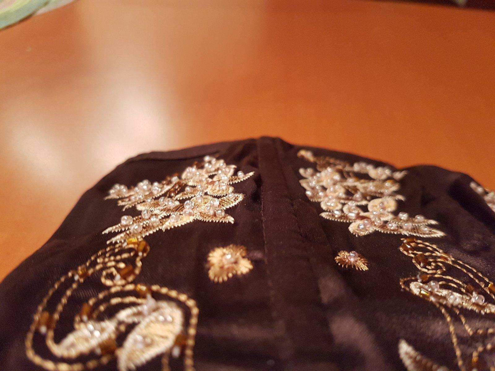 material leskly saten s prepracovanym vysivanim a goralkami. bez poskodeni.