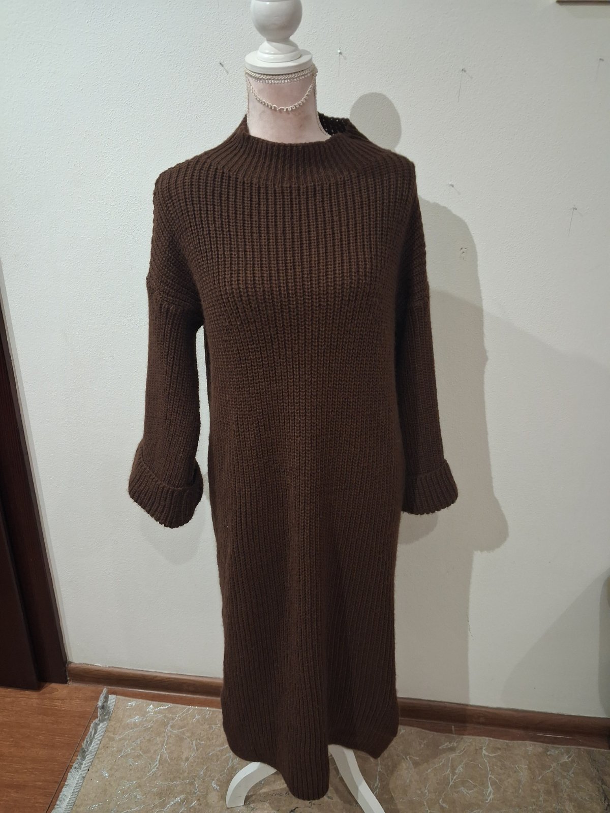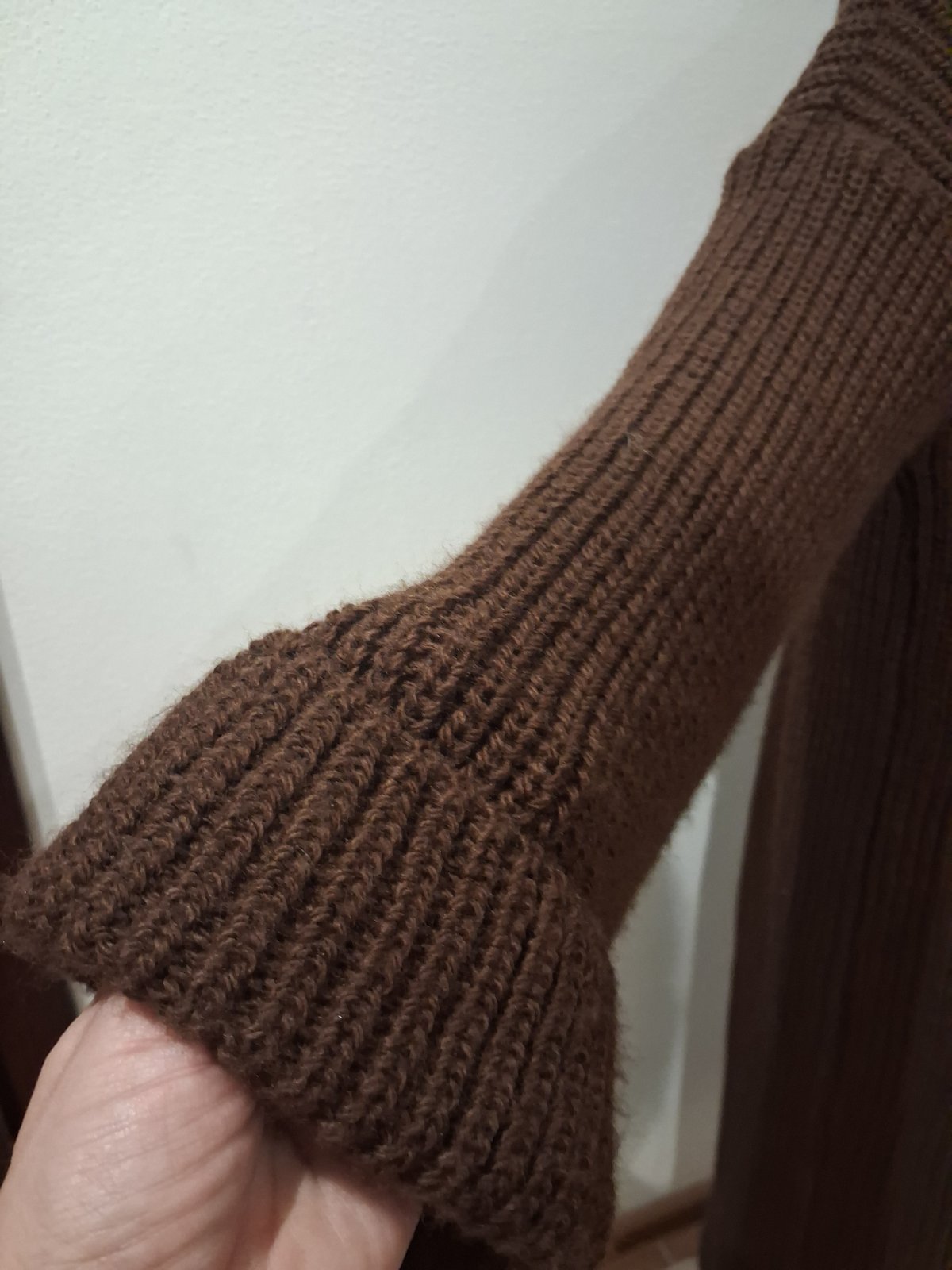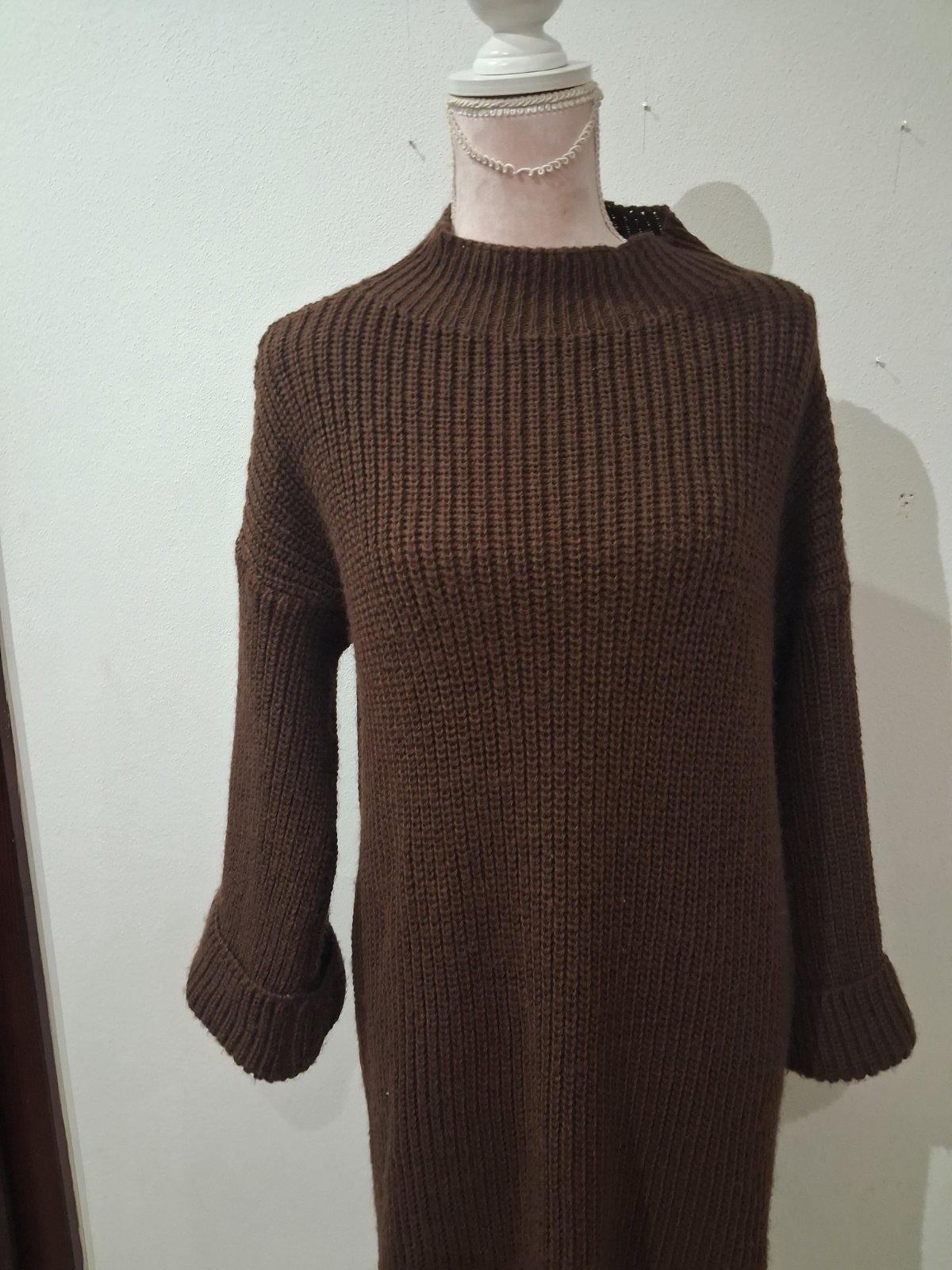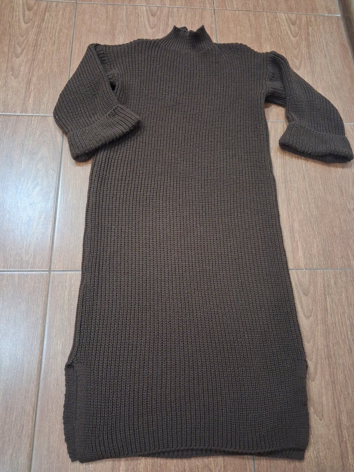 Krásne pletene šaty, v super stave, bez poškodenia alebo žmolkov.Šaty majú na bokoch razporky,rukávy rozšírené na konci ukončené manžetou, veľ Uni vhodné pre veľ S-L